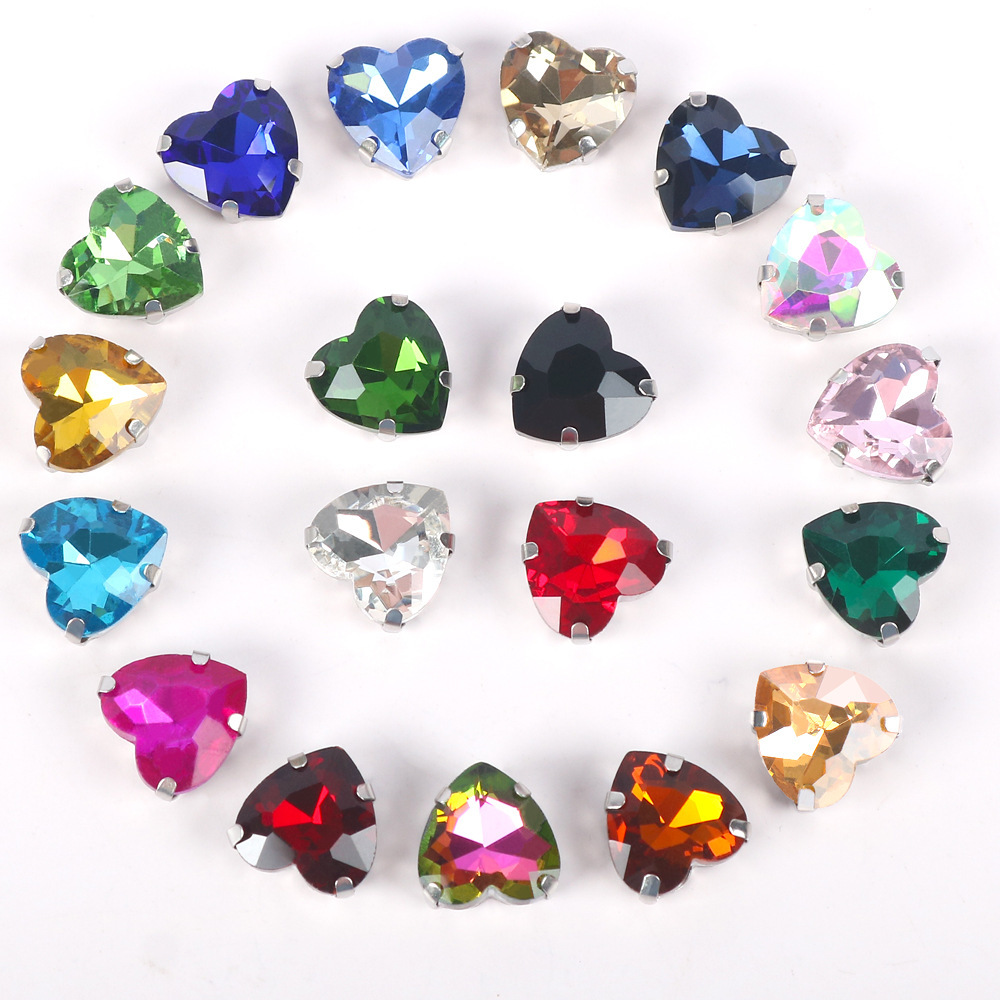 사랑 실버 바닥 발톱 다이아몬드 유리 크리스탈 다이아몬드 diy 모조 다이아몬드 의류 웨딩 액세서리 손으로 꿰맨 하트 모양의 다이아몬드스토어 가기