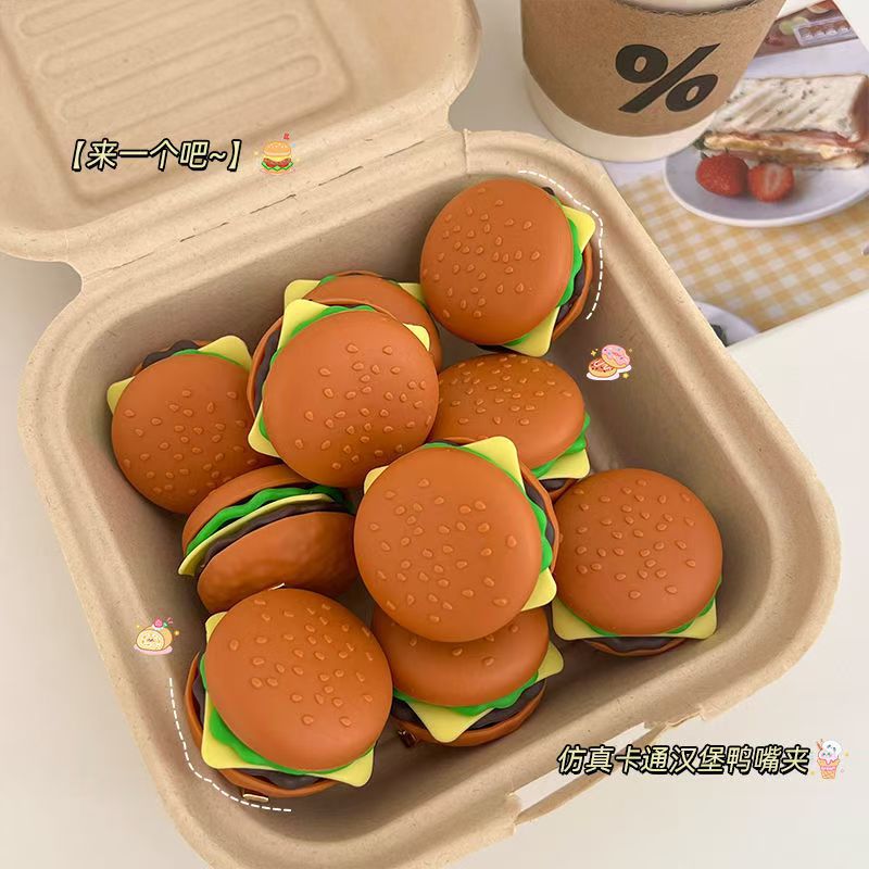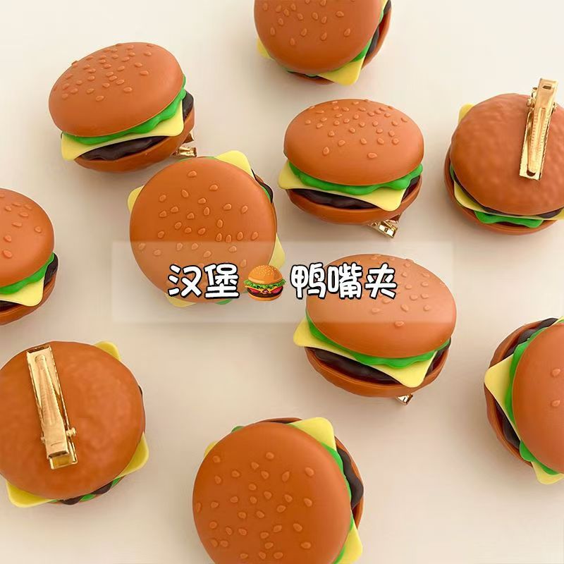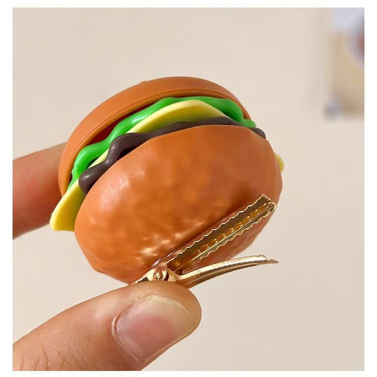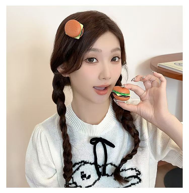 인공 식품 및 놀이 햄버거 샌드위치 학생 헤어핀 재미 귀여운 재미있는 헤어 액세서리 뱅 헤어핀 여성 헤드웨어 선물스토어 가기