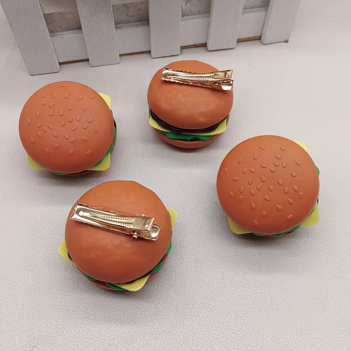 인공 식품 및 놀이 햄버거 샌드위치 학생 헤어핀 재미 귀여운 재미있는 헤어 액세서리 뱅 헤어핀 여성 헤드웨어 선물