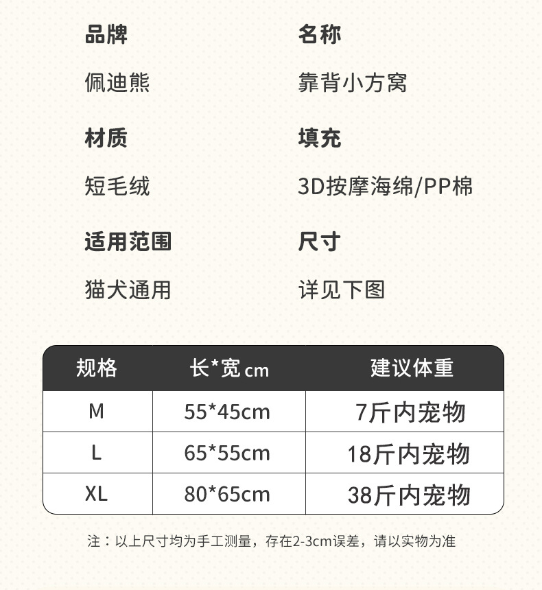 • M-55*45cm【 3.5kg 미만의 개와 고양이】