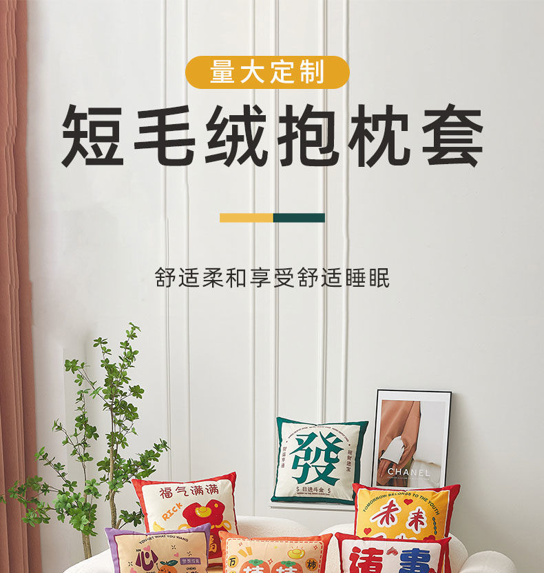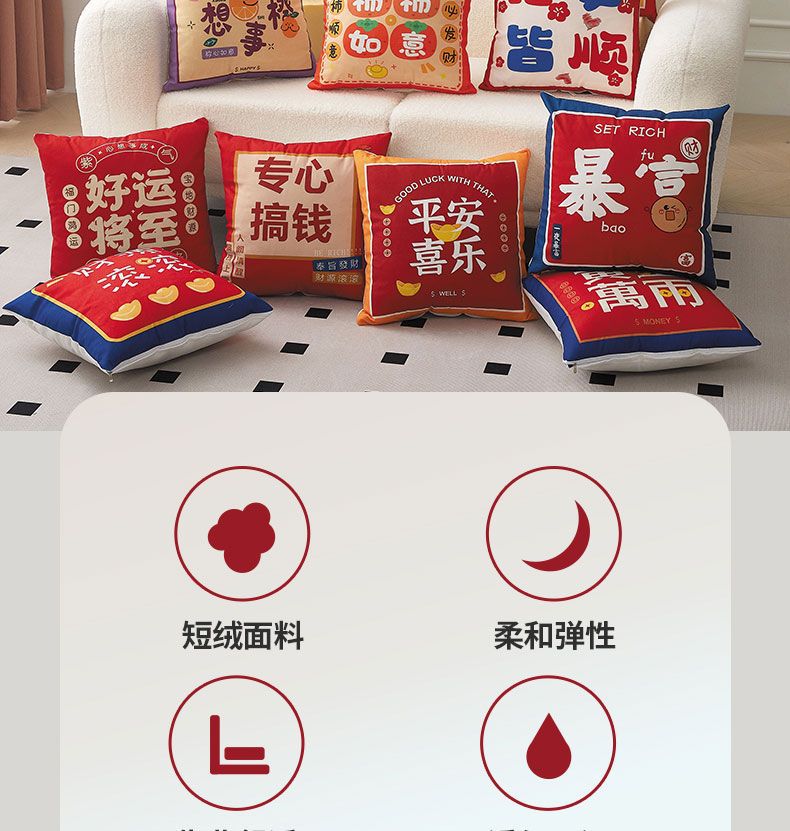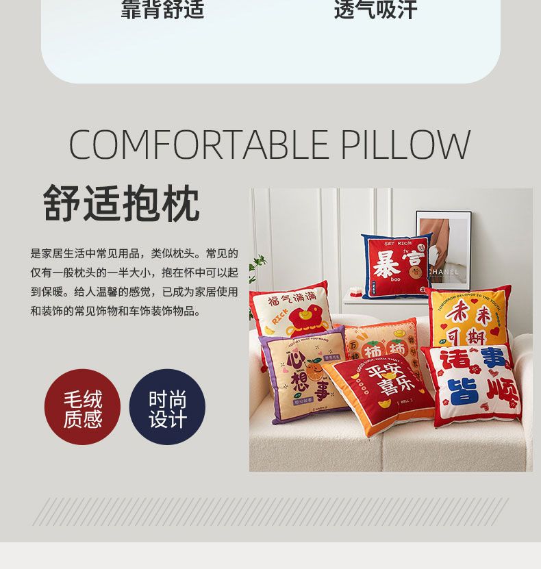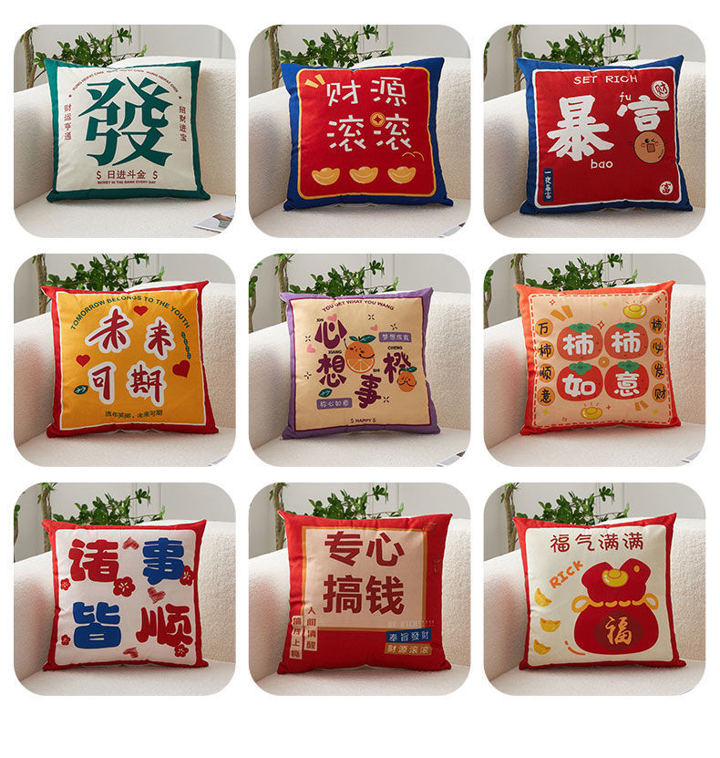 새로운 짧은 봉제 국가 패션 텍스트 베개 홈 장식 소파 베개 풍부한 새해 베개스토어 가기