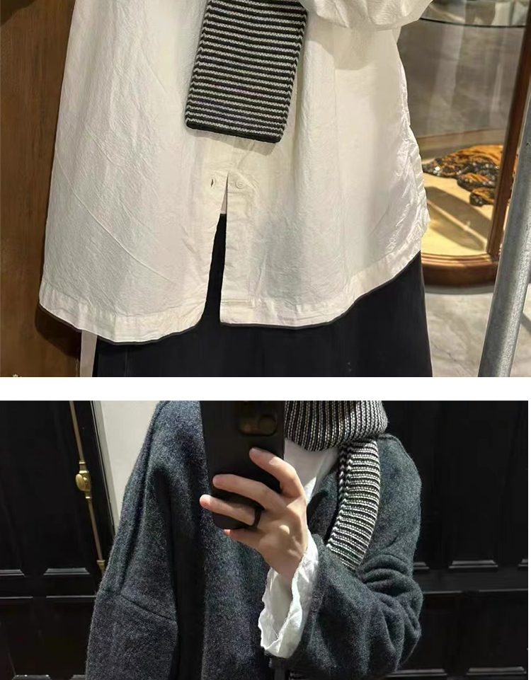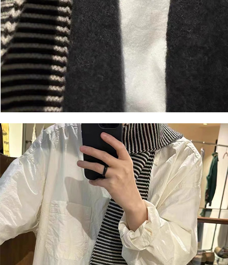 [준준] 컬러매치스트라이프 양모 스카프 여성 비준준 가을 · 겨울 조커 스카프 좁은 판 작은 스카프