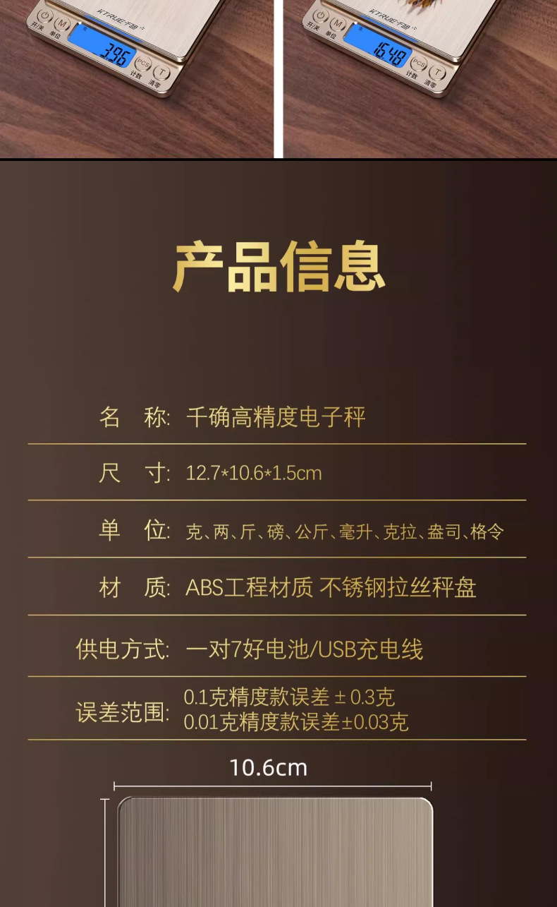 • 충전식 모델 [500g/0.01g] 업그레이드된 리치 골드 + 수집 및 구매 럭셔리 선물