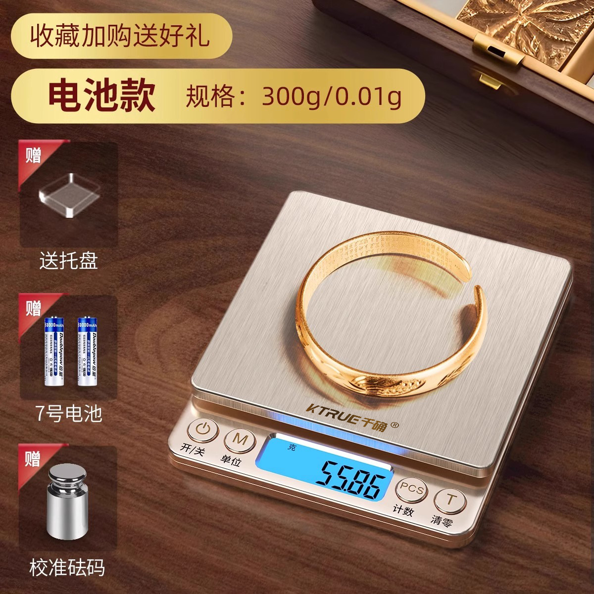 • 배터리 모델 [300g/0.01g] 업그레이드된 리치 골드 + 수집 및 구매 럭셔리 선물