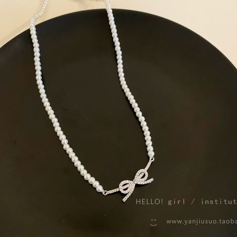 부드러운 프랑스 활 진주 목걸이 2024 새로운 뜨거운 프랑스 쇄골 체인 여성의 하이 엔드 장식 목걸이스토어 가기