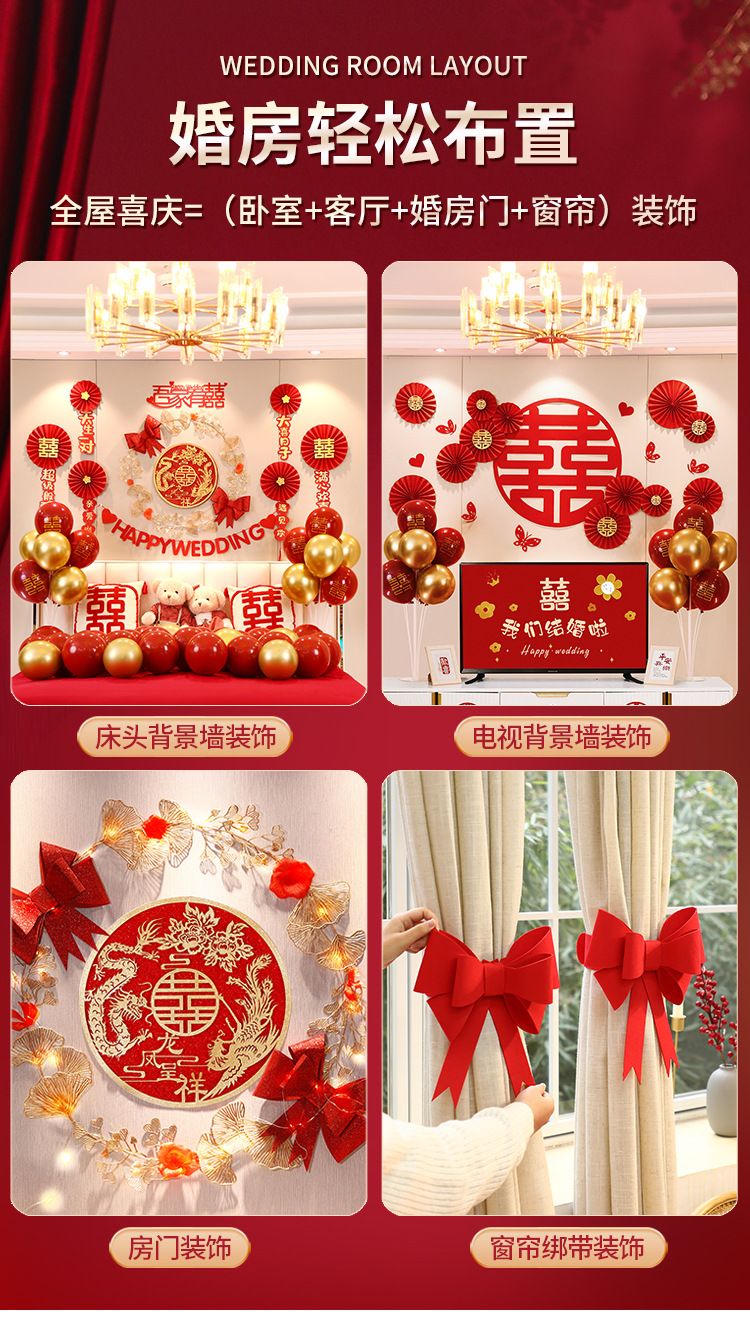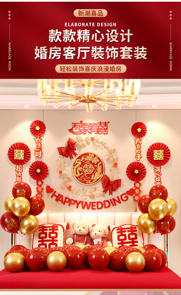 웨딩 룸 장식 세트 웨딩 장식 남자의 웨딩 뉴 하우스 여자의 침실 거실 웨딩 용품 다콴 룸