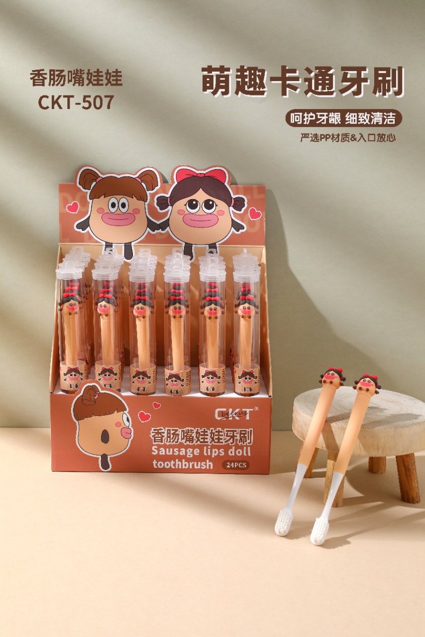 사이버 레드 만화 칫솔 귀여운 장난감 머리 학생 남녀 커플 부드러운 칫솔 휴대용 여행 튜브 재고