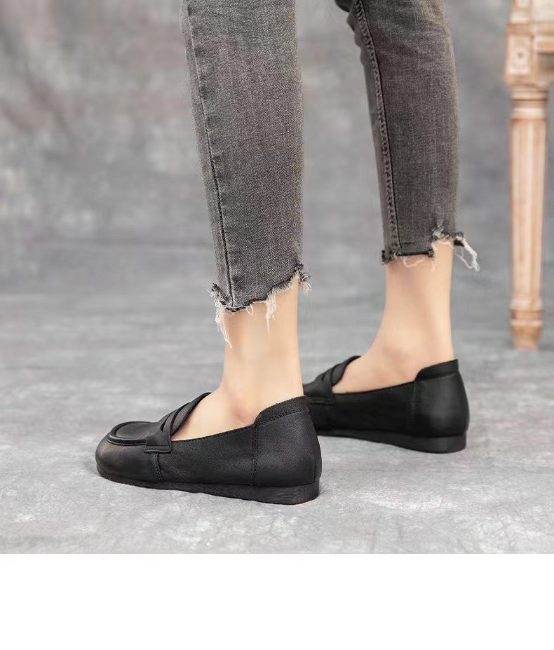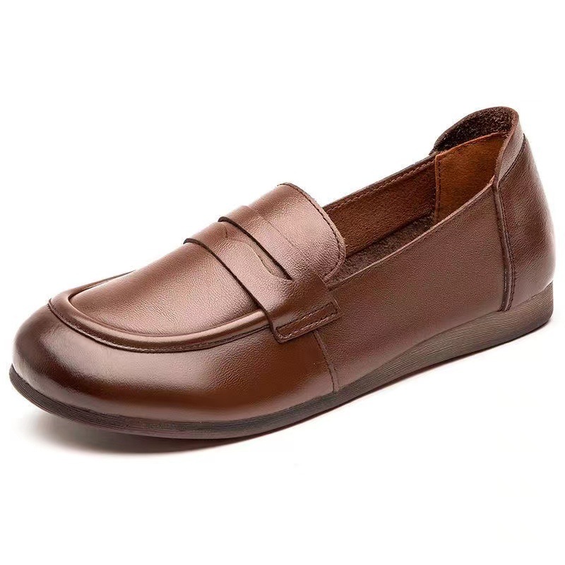 폭발성 재고 낮은 뒤꿈치 부드러운 밑바닥 얕은 입 싱글 레이어 신발 부드러운 가죽 편안한 작은 가죽 신발 여성 올 매치 캐주얼 엄마 신발 작업 신발스토어 가기