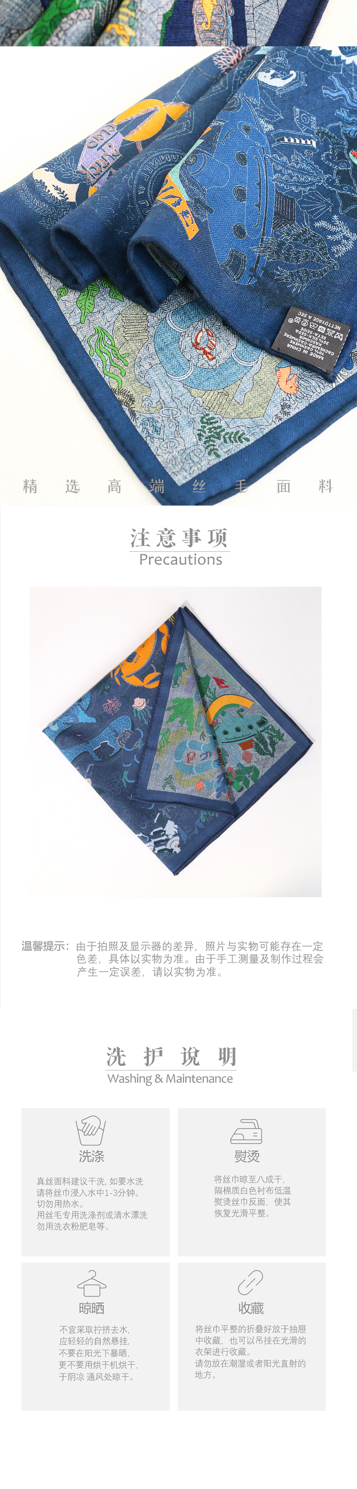 F [Underwater World] 러브마 멀베리 실크 양면 이색 실크 울 스카프 다용도 70 실크 울 중국 사각 스카프스토어 가기