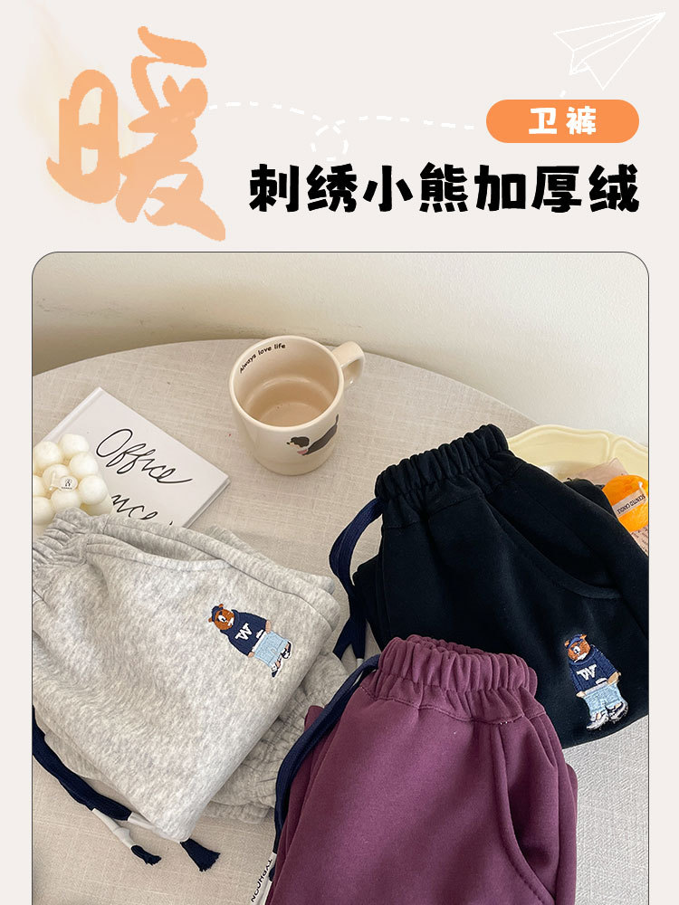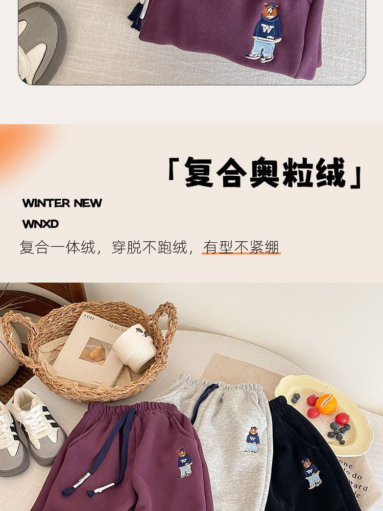 아동용 기모 바지 가을 겨울 남아 여아 보온 면바지 중대형 아동용 일체형 기모 스포츠 캐주얼 바지 트렌디한 아동복스토어 가기