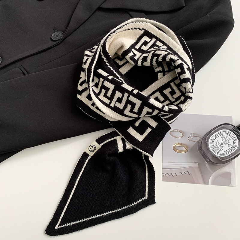 작은 귀 스카프 여성의 가을과 겨울 한국 스타일 베벨 가장자리 양면 사용 가능한 니트 양모 작은 스카프 따뜻한 스카프