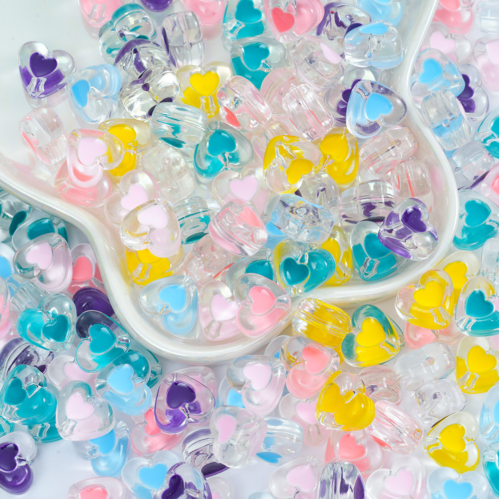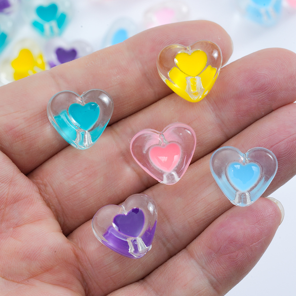 아크릴 오일 드롭 사랑 투명 복숭아 구슬 천공 된 구슬 팔찌 구슬 소재 수제 DIY 보석 액세서리