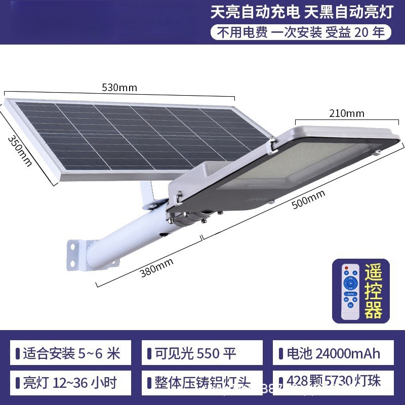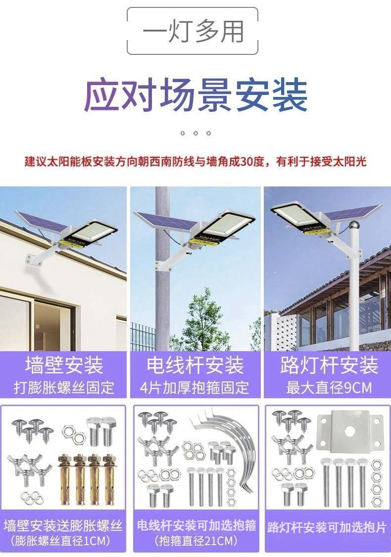 • 가로등 + 1000W 고휘도 모델 [램프 비즈 288개] + 대형 태양광 패널