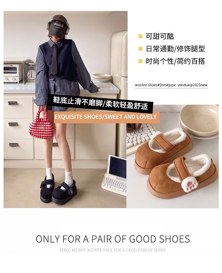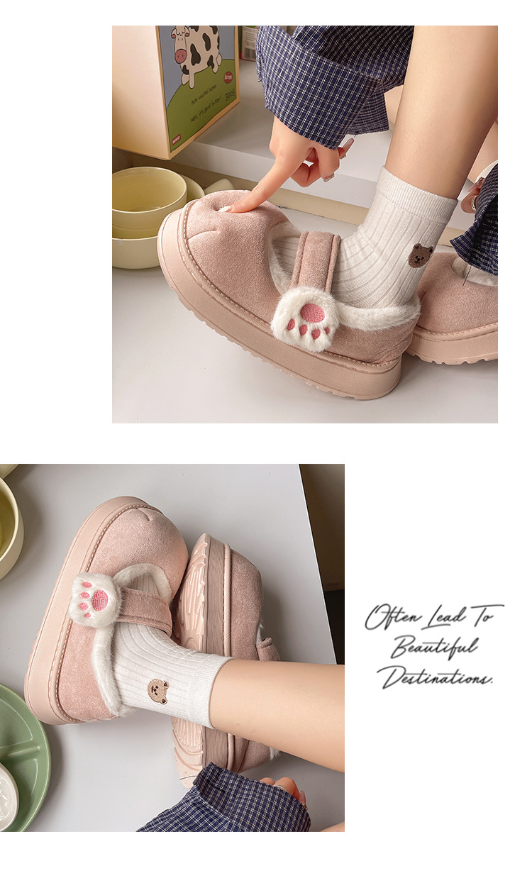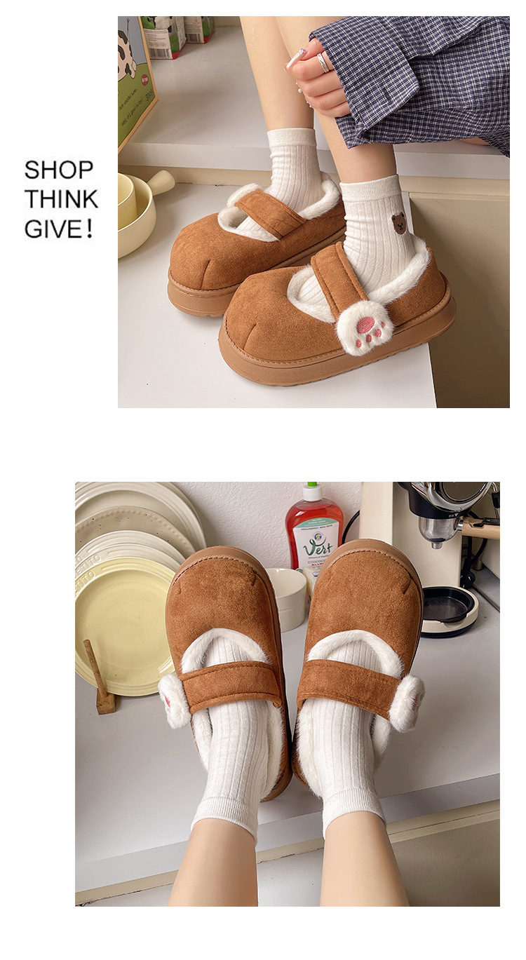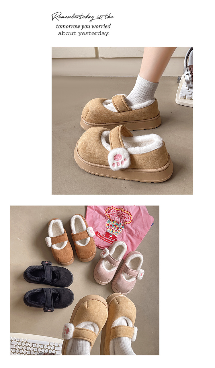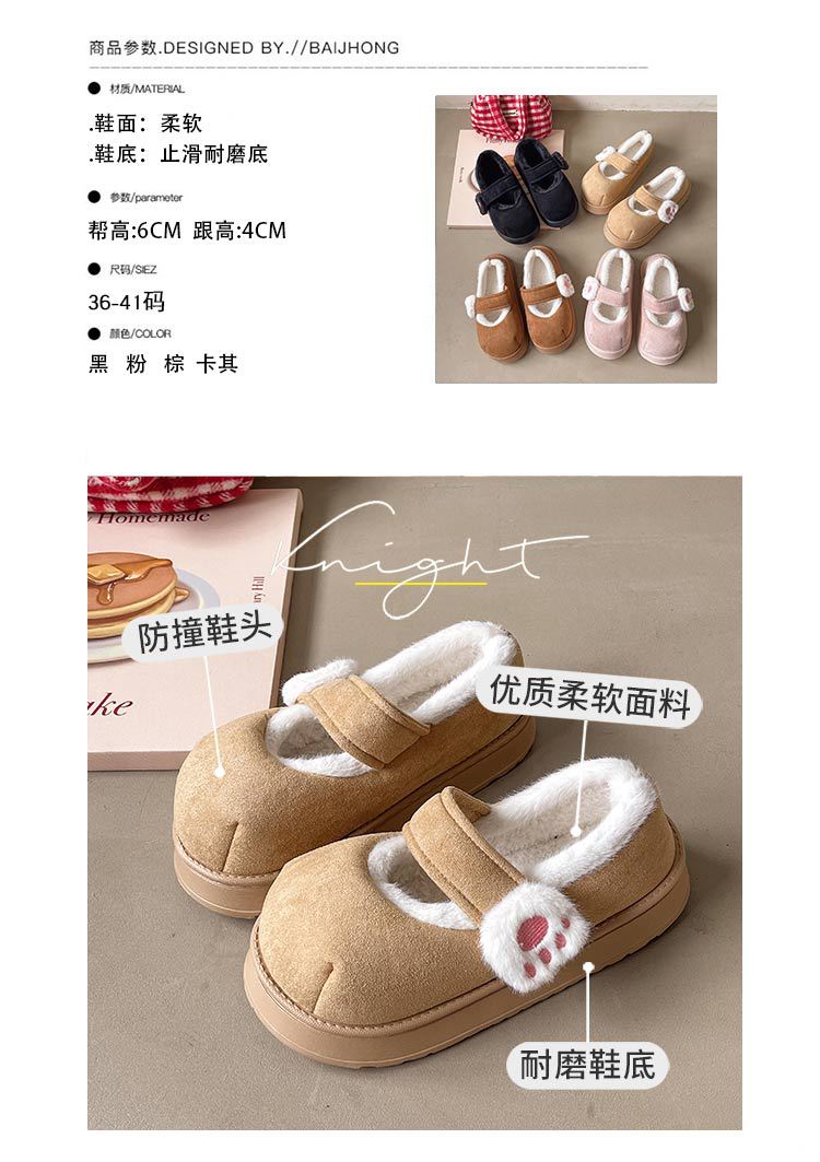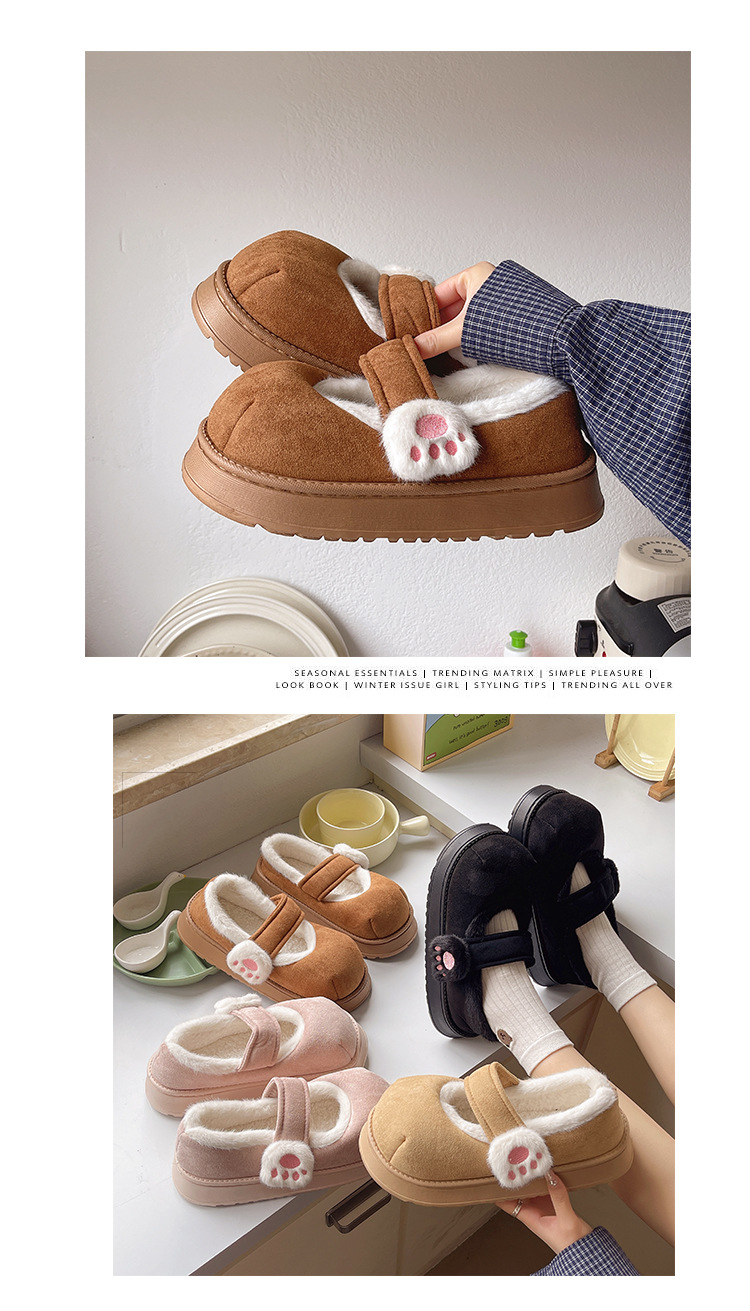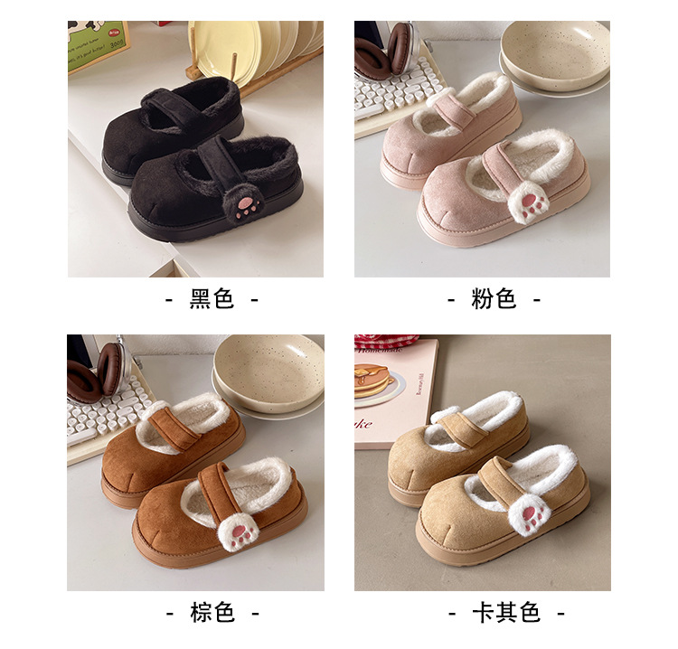 겨울용 면 슬리퍼, 두꺼운 밑창, 게으른 사람들을 위한 따뜻한 벨크로 면 슬리퍼, 여성용 귀여운 고양이 발톱 캐주얼 면 슬리퍼스토어 가기