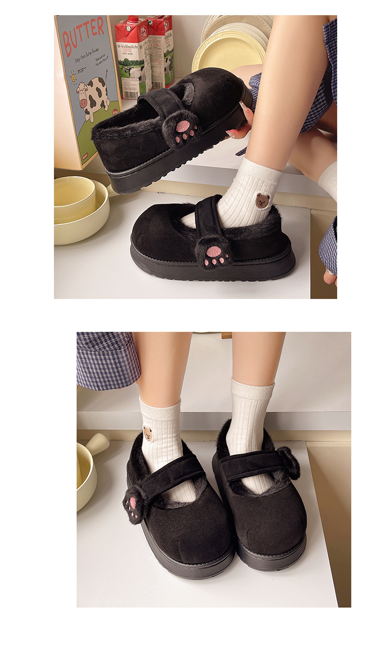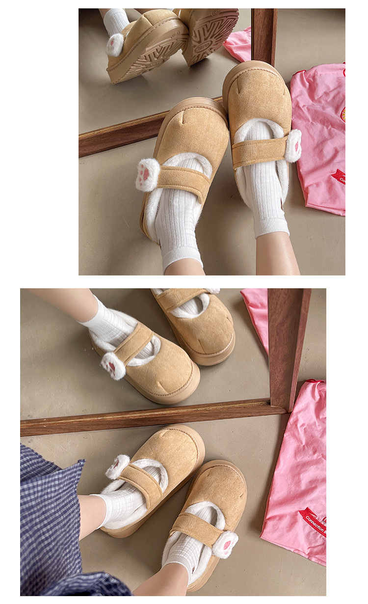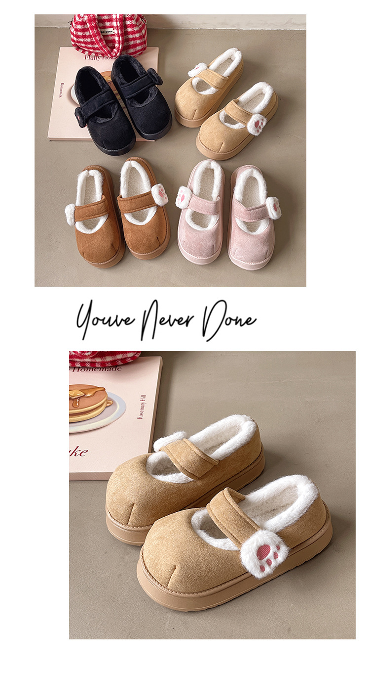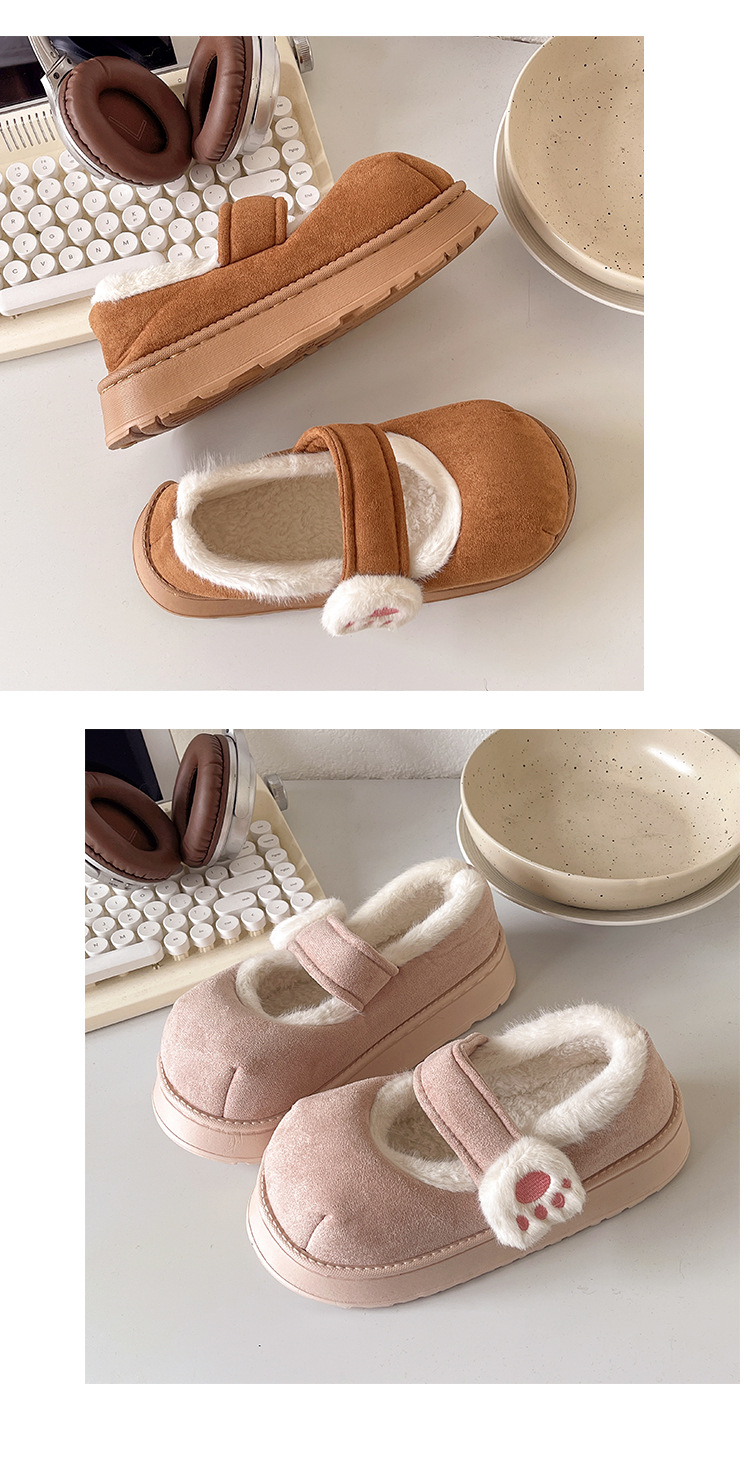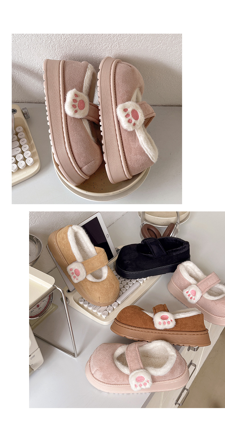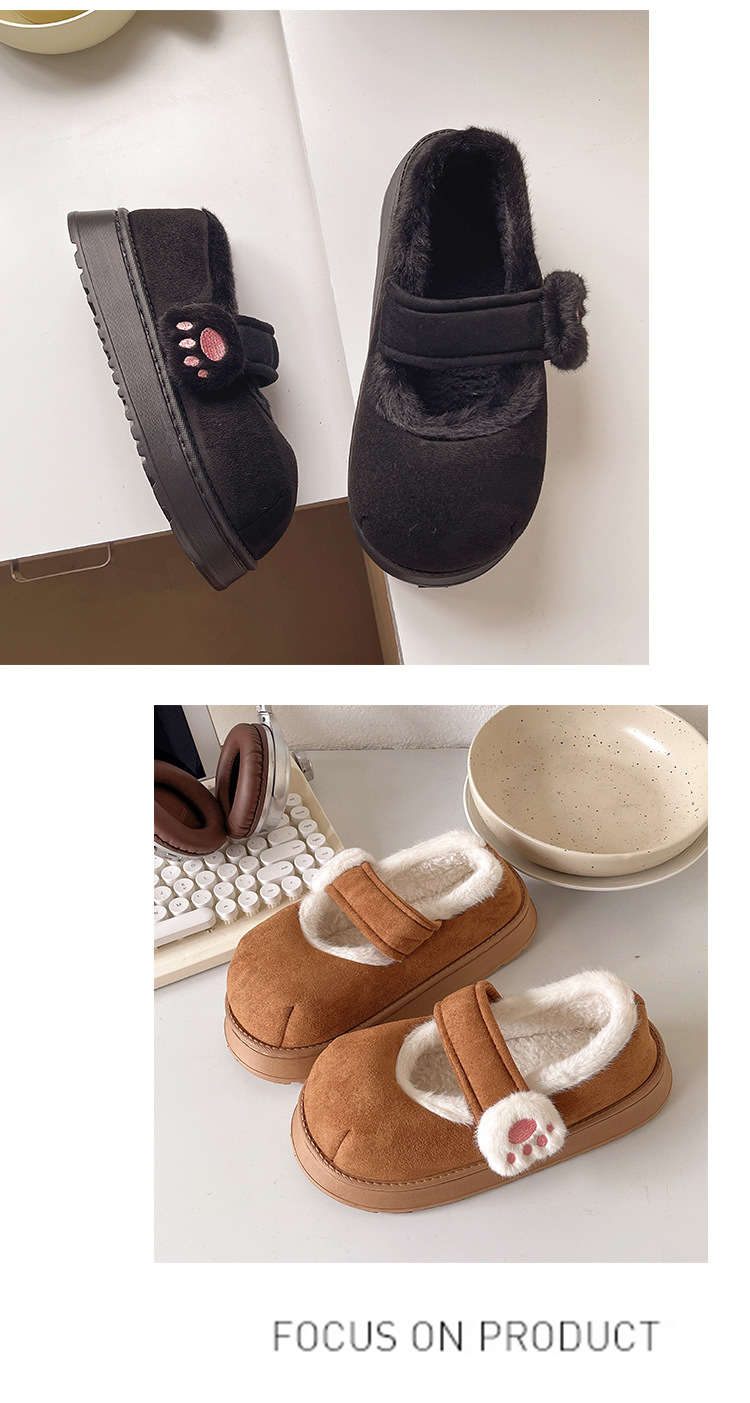 겨울용 면 슬리퍼, 두꺼운 밑창, 게으른 사람들을 위한 따뜻한 벨크로 면 슬리퍼, 여성용 귀여운 고양이 발톱 캐주얼 면 슬리퍼