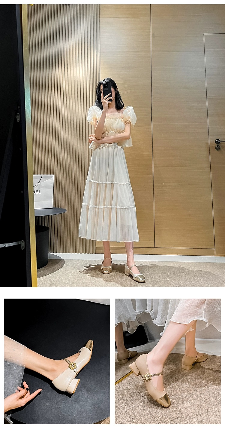 두꺼운 굽의 우아한 얕은 굽 여성용 신발 2025년 신상 여름 부드러운 가죽 프렌치 스타일 메리제인 소형 여성화