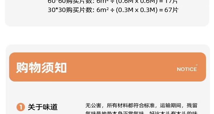 • 60*60*1.2cm [6개/포름알데히드 무첨가/향상된 무취] (2.16m2 적용 가능)