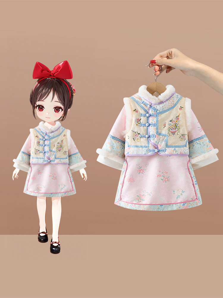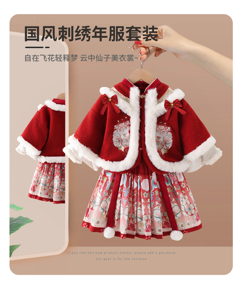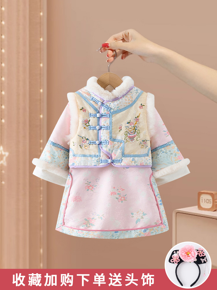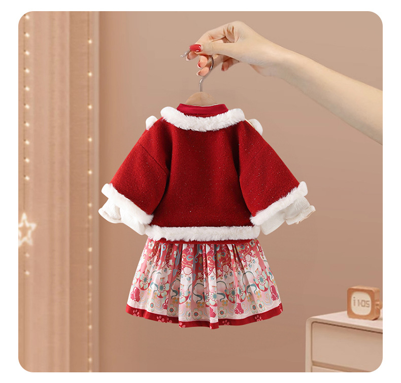여아 한복, 중국풍 양복, 말머리 스커트, 한 살 선물, 겨울옷, 새로운 스타일, 서양식 아동 새해 옷, 새해 옷스토어 가기