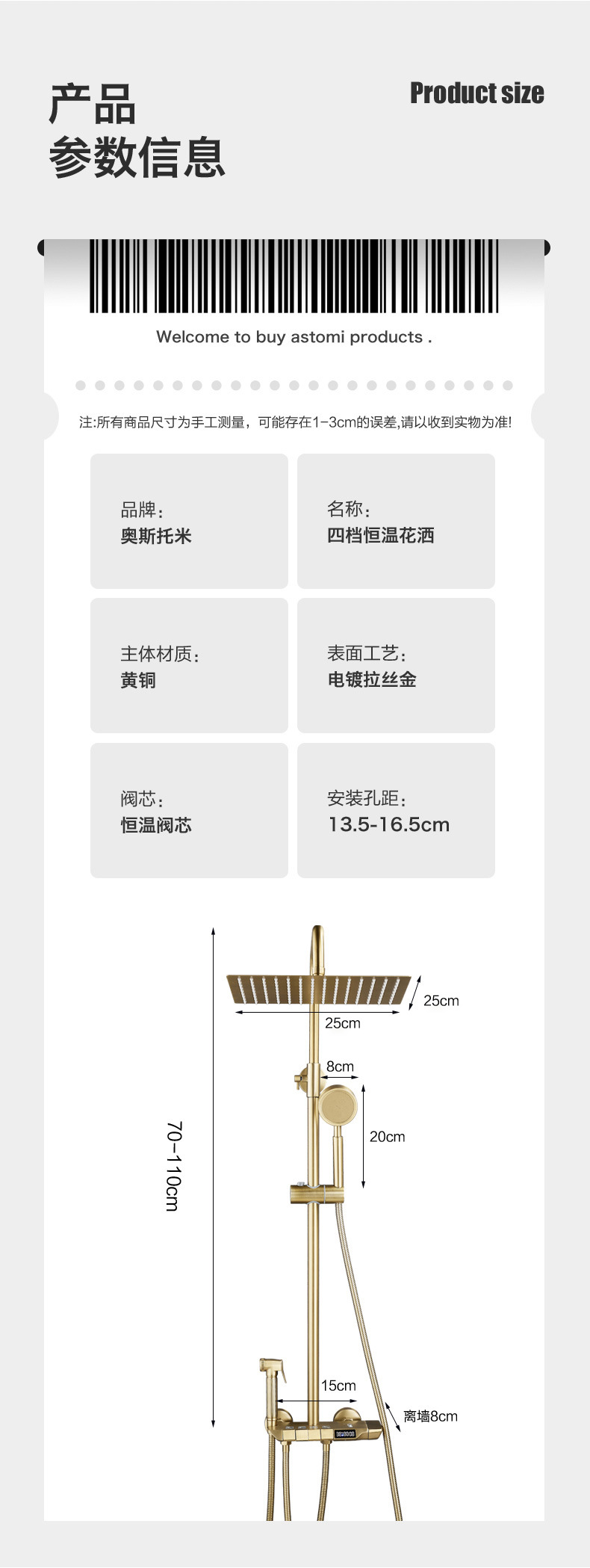 • 브러시드 골드 라이트 럭셔리 항온 4단 샤워 스테인레스 스틸 노즐