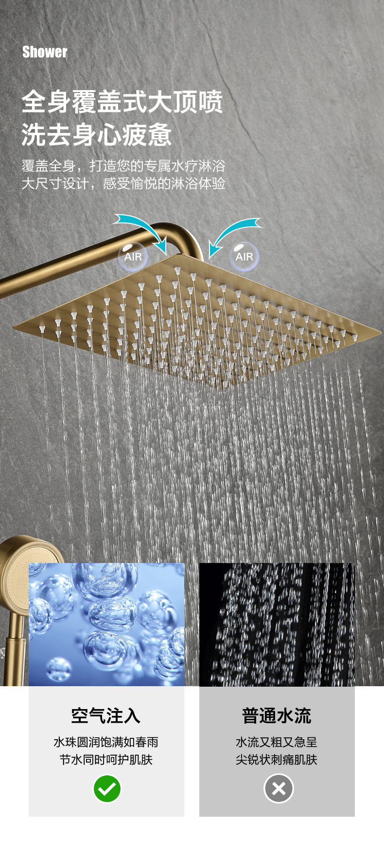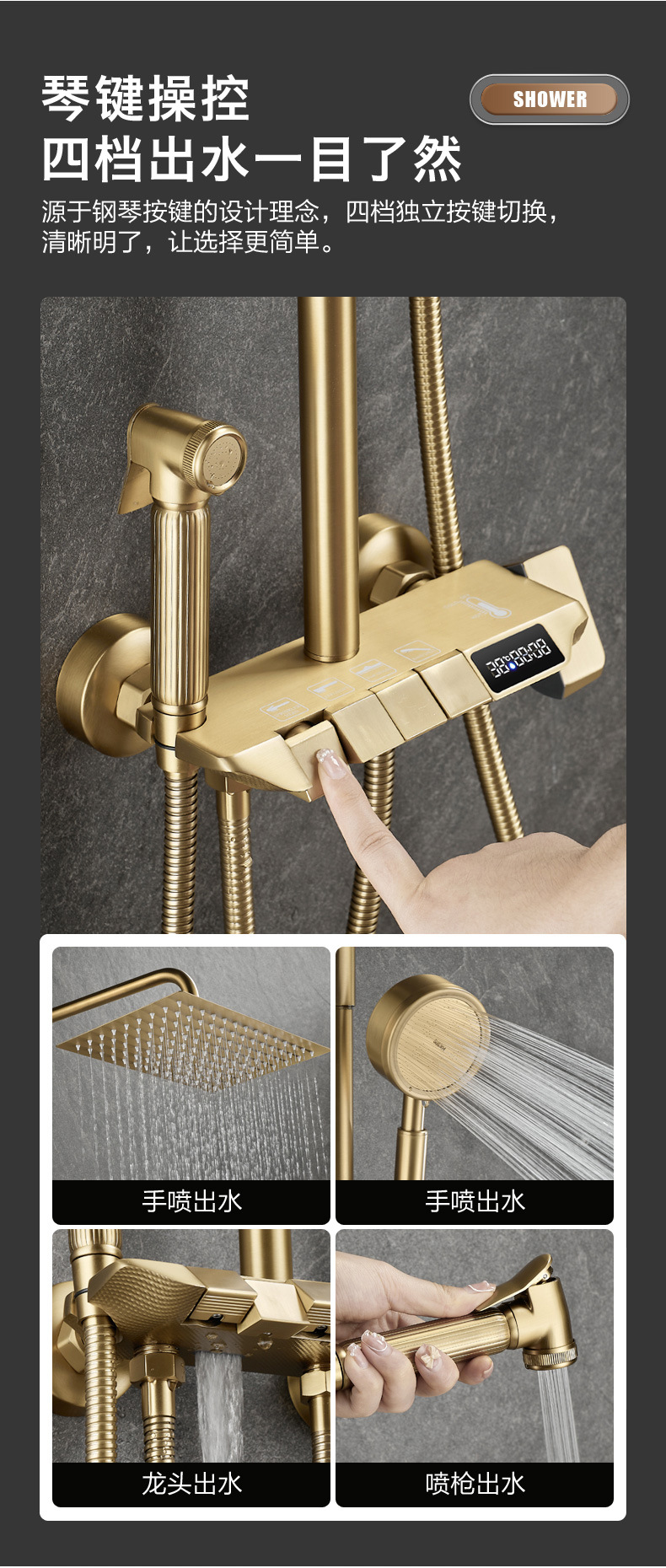 와이어 드로잉 골드 샤워 세트 샤워 가구 피아노 키 욕조 욕실 일정한 온도 디지털 디스플레이 압축 꽃 건조 노즐