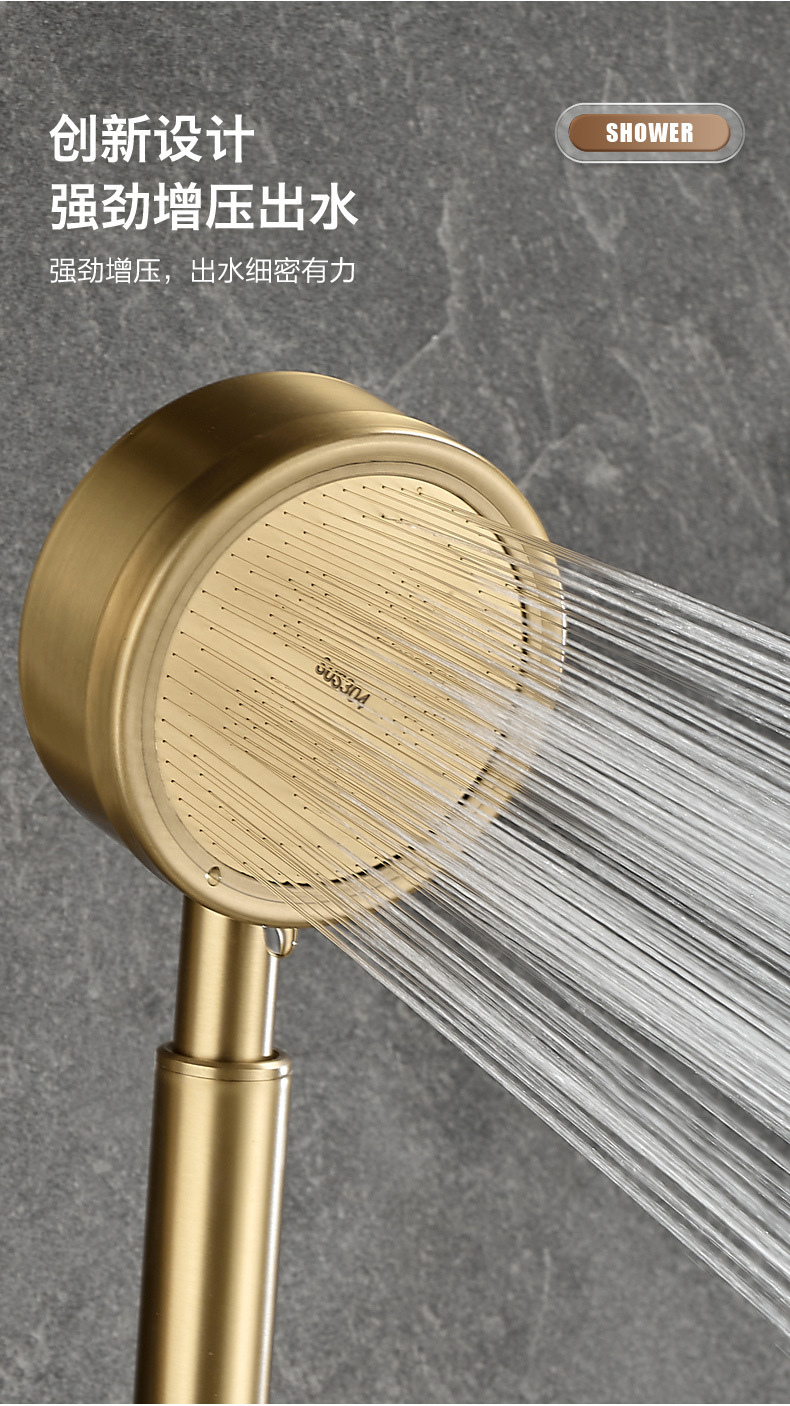 • 브러시드 골드 라이트 럭셔리 뜨겁고 차가운 4단 샤워 스테인레스 스틸 노즐