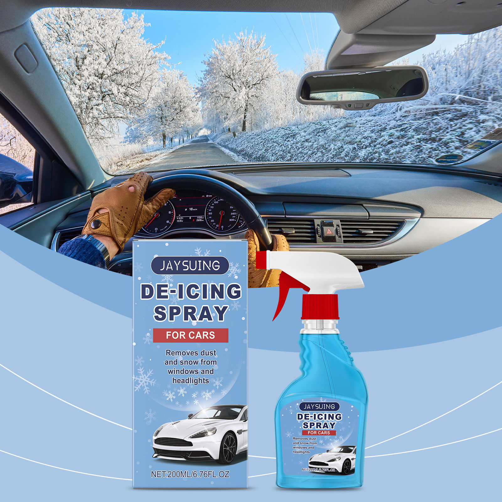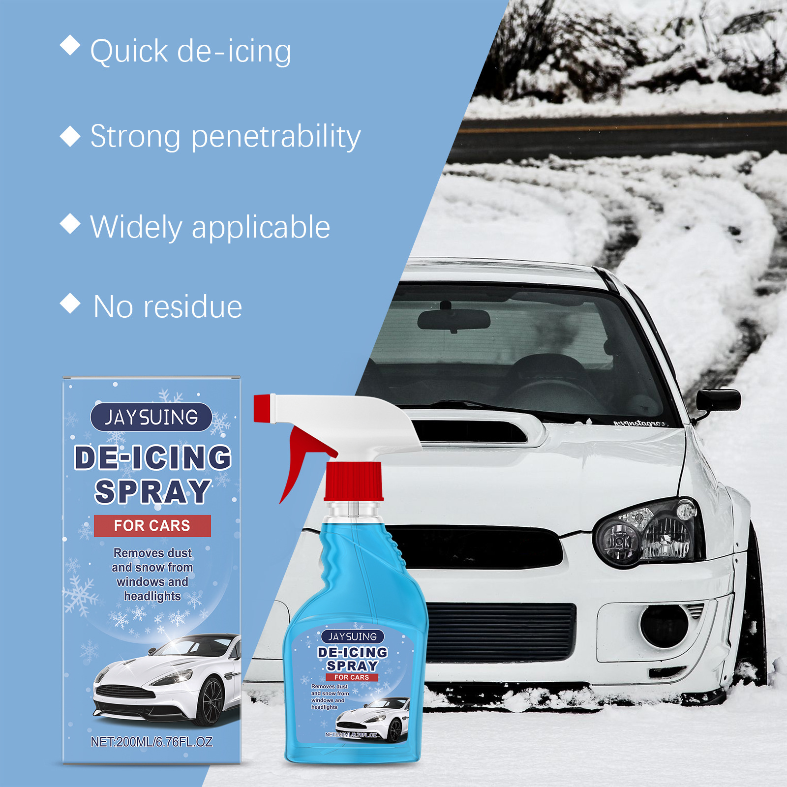 JAYSUING 제빙 스프레이 자동차 창 유리 제빙 안티 안개 지속 보호 편리한 제빙 스프레이스토어 가기