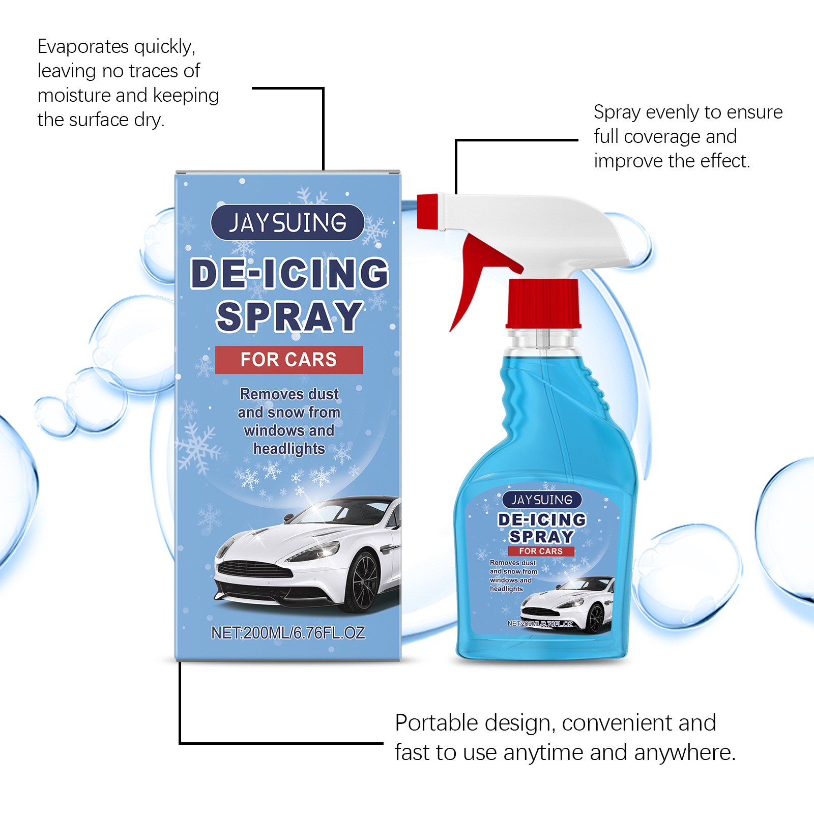 JAYSUING 제빙 스프레이 자동차 창 유리 제빙 안티 안개 지속 보호 편리한 제빙 스프레이