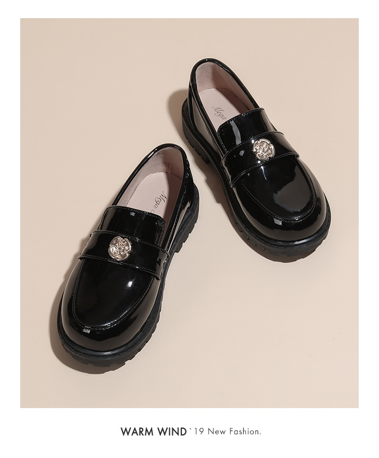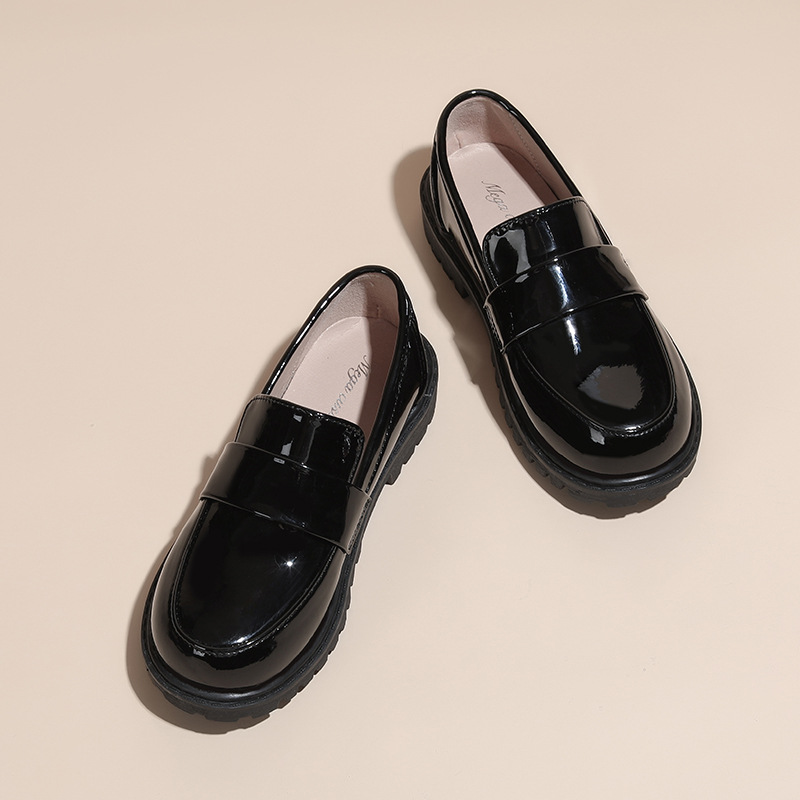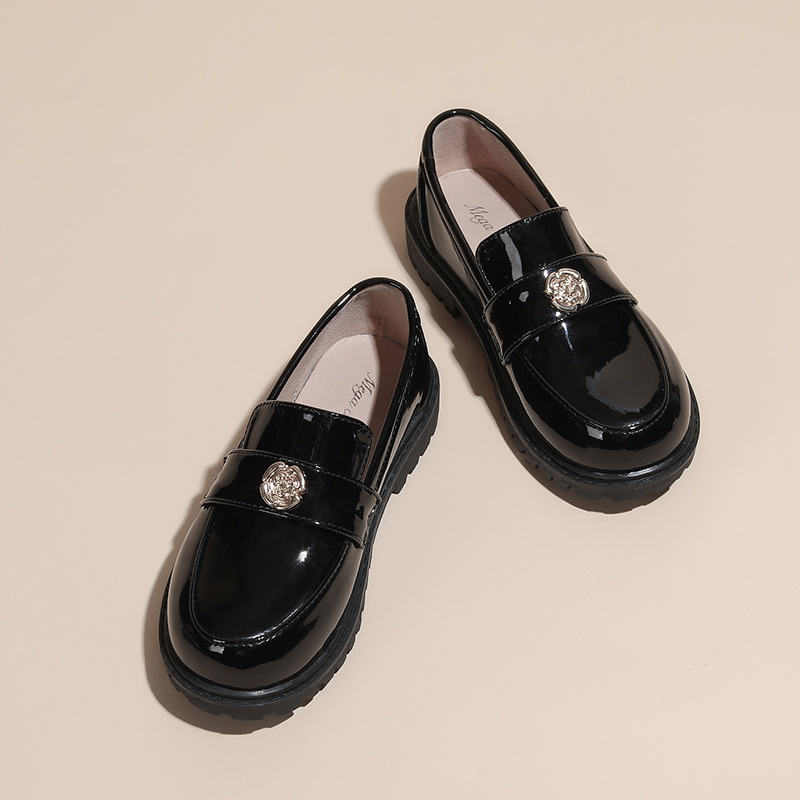 소녀 동백 로퍼 빈티지 가을과 겨울 두꺼운 가죽 신발 부드러운 밑창 싱글 레이어 신발 어린이 JK 블랙 퍼포먼스 가죽 신발
