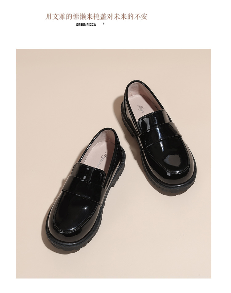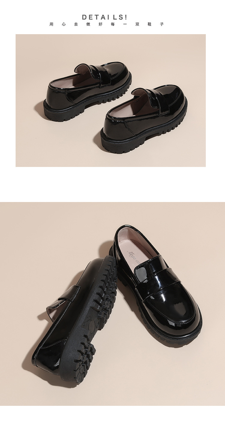 소녀 동백 로퍼 빈티지 가을과 겨울 두꺼운 가죽 신발 부드러운 밑창 싱글 레이어 신발 어린이 JK 블랙 퍼포먼스 가죽 신발스토어 가기
