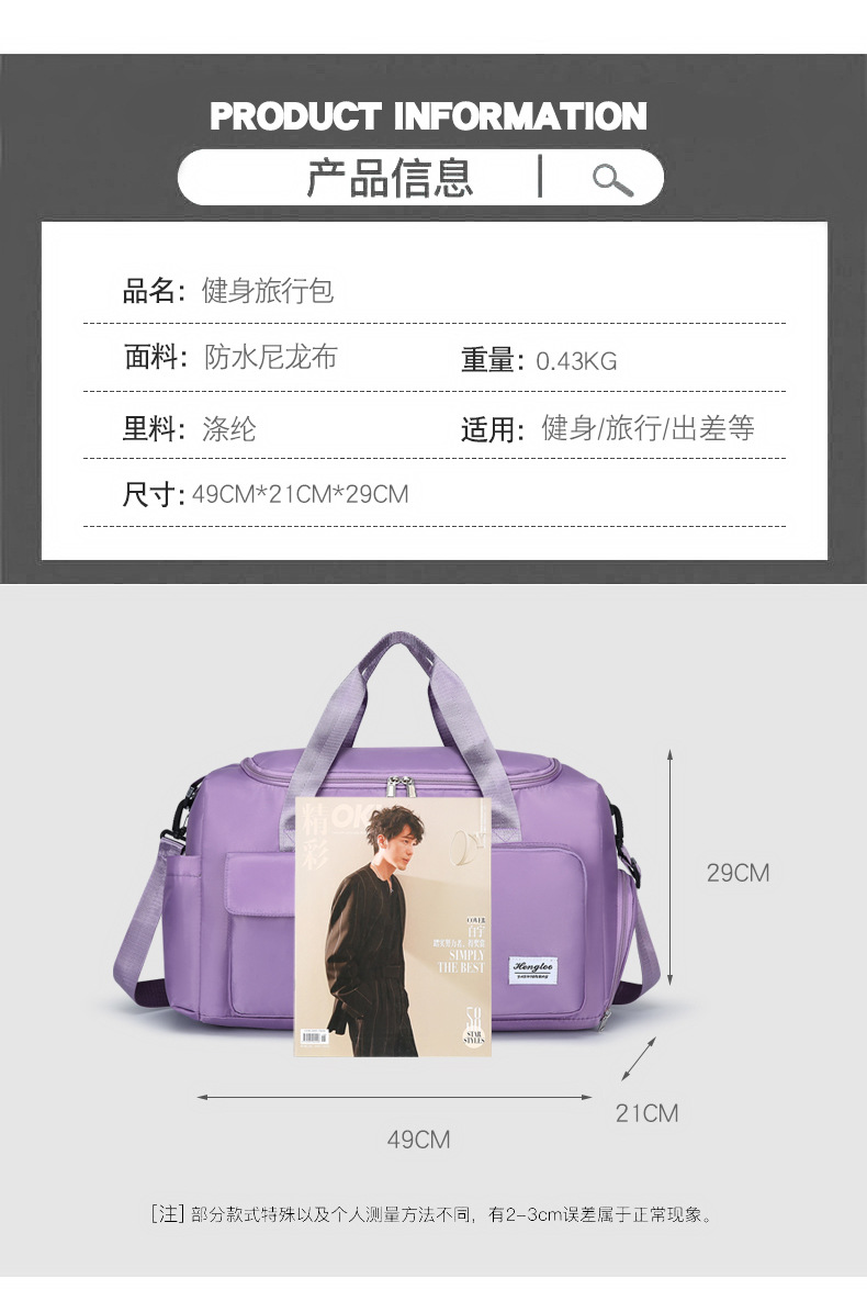 건조하고 젖은 별도의 멀티 포켓 수하물 보관 가방 나일론 캐주얼 간단한 여행 가방 남성과 여성의 패션 스포츠 피트니스 가방