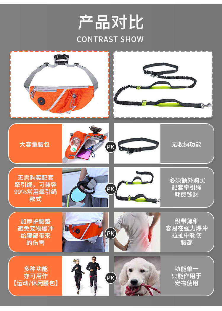 3.再也不需要购买额外的又丑又重的腰带配套牵引绳了,你现在用的喜欢的绳子就能用!