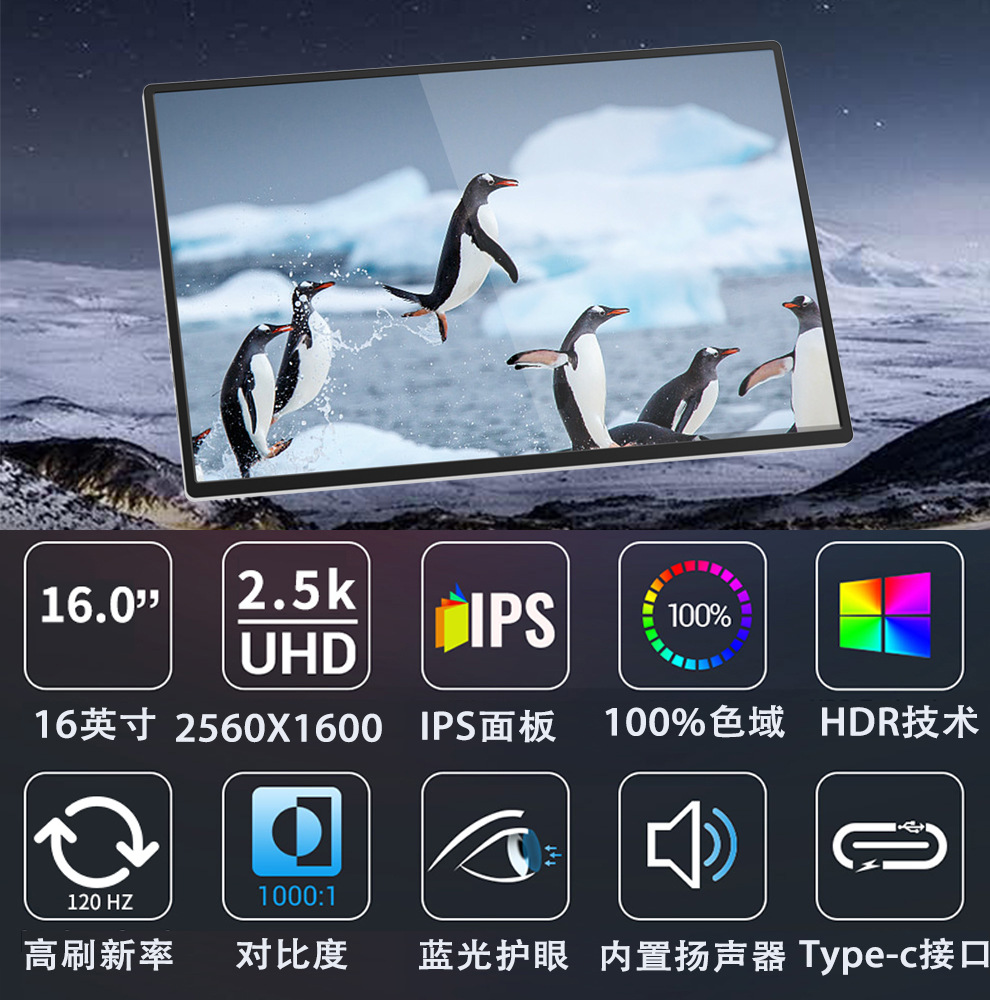 ZWBA 휴대용 모니터 2.5K/4K 고화질 120HZ 고주사율 휴대폰/게임기 노트북 확장 화면스토어 가기