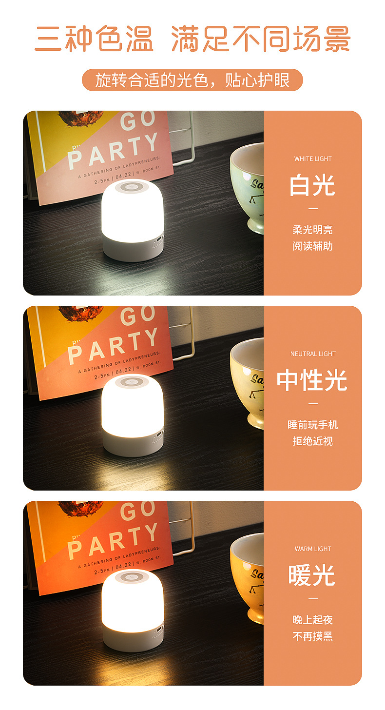 새로운 led 야간 조명 침대 옆 눈 보호 아기 간호 수면 타이밍 USB 충전식 기숙사 분위기 팻 라이트스토어 가기