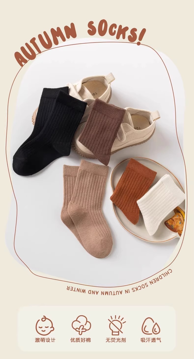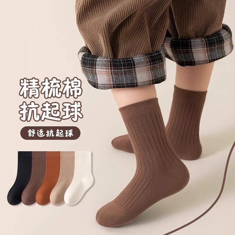 어린이 양말 가을과 겨울 클래스 남자와 여자 따뜻한 스타킹을위한면 단색 중간 길이 양말스토어 가기