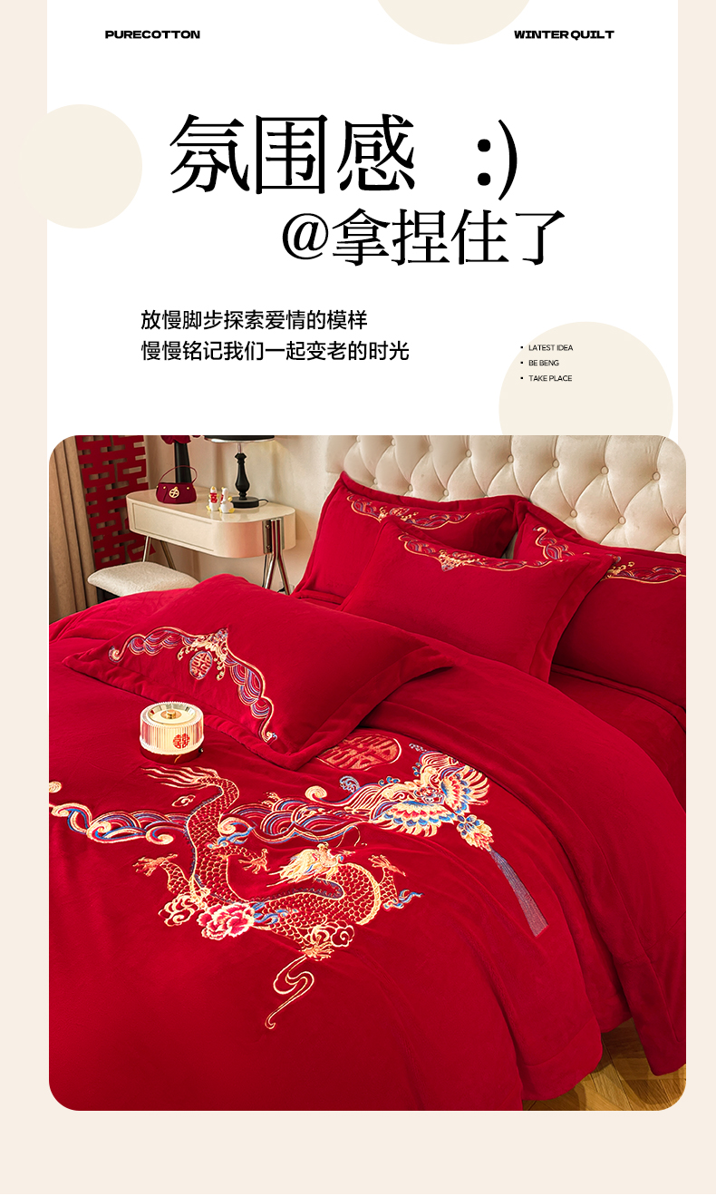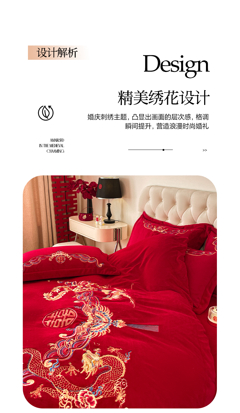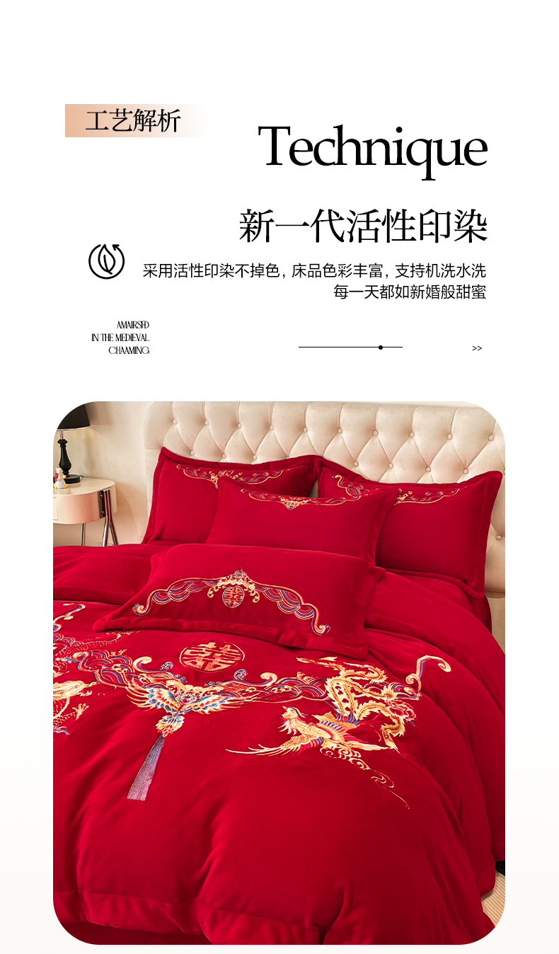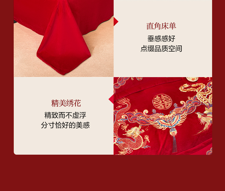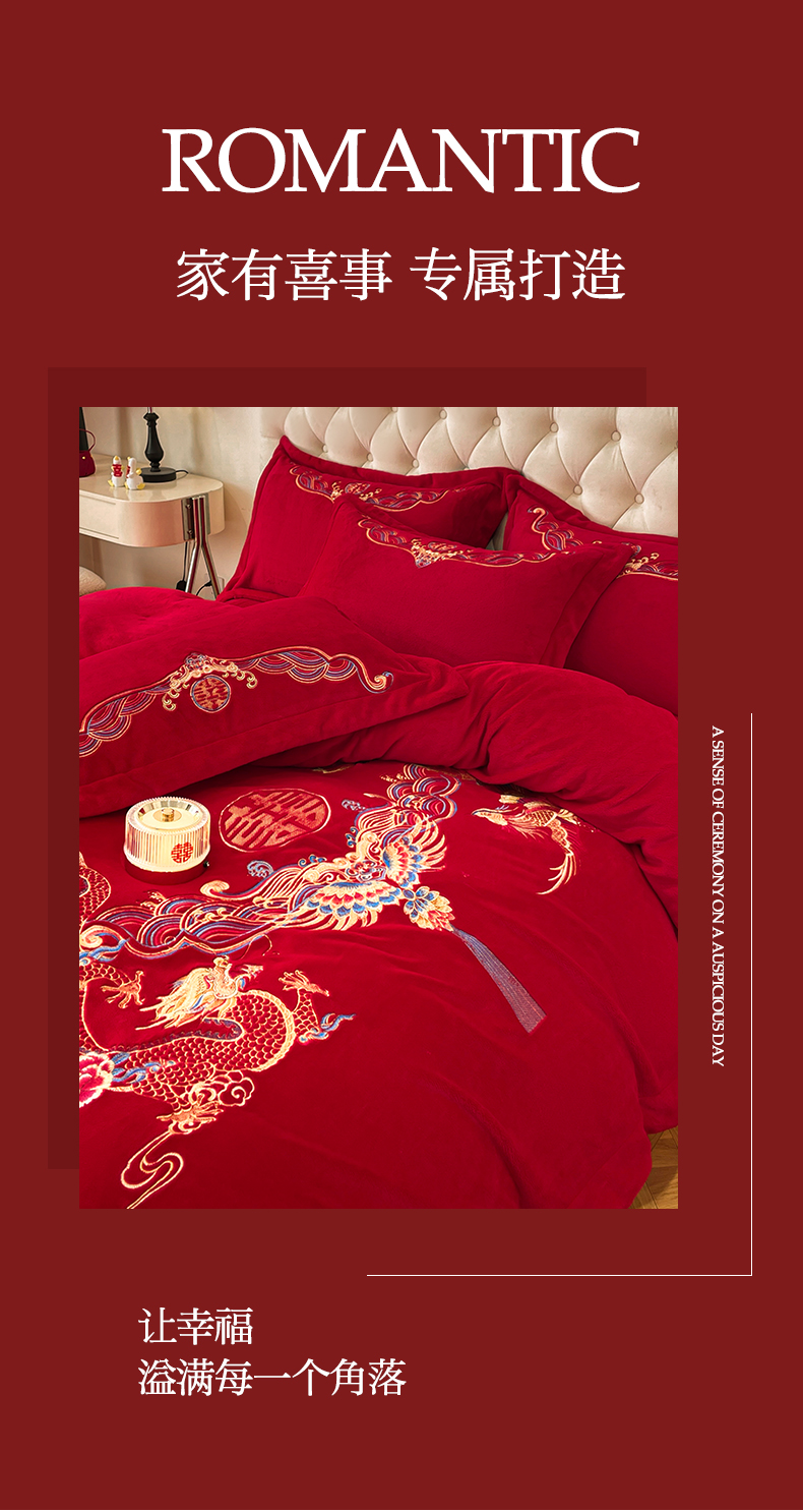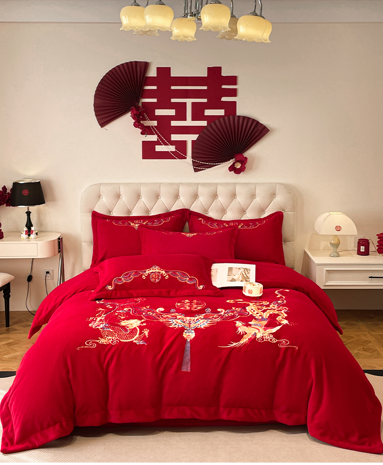고급 중국 자수 우유 벨벳 침대 4 피스 큰 빨간 침대 시트 퀼트 커버 겨울 웨딩 웨딩 침구스토어 가기