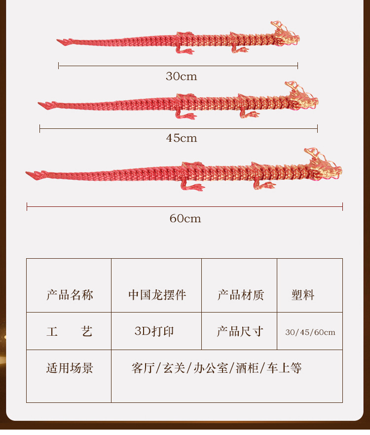 대형 3D 인쇄 중국 용 어항 조경 장식품 기능 용 수공예 조인트가 움직일 수있는 자동차 실내 장식스토어 가기