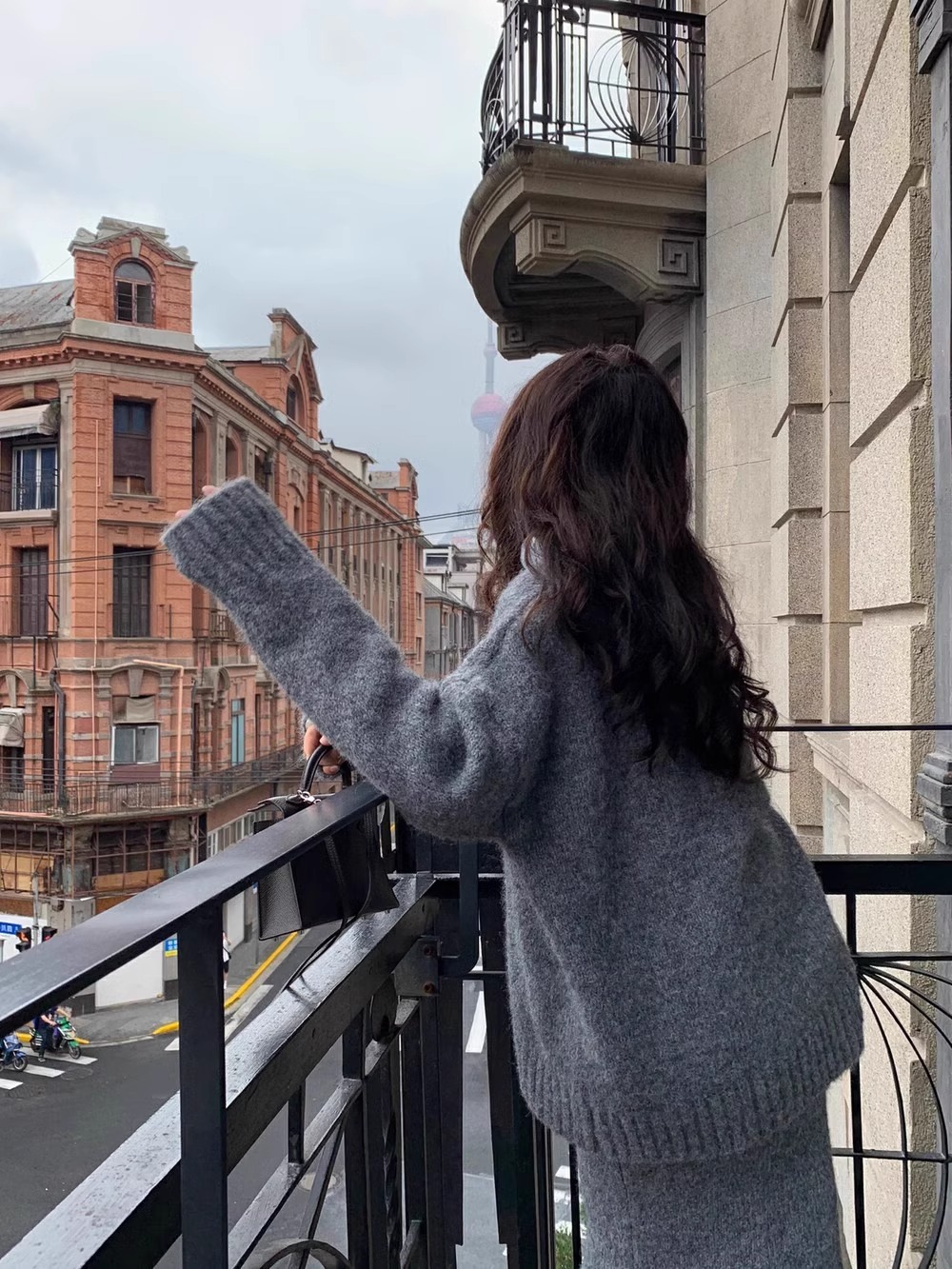 게으른 스타일 스웨터 원피스 여성의 가을과 겨울 V 넥 풀오버 니트 울 탑 스커트 패션 투피스 세트스토어 가기