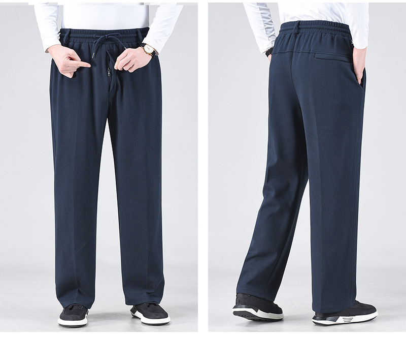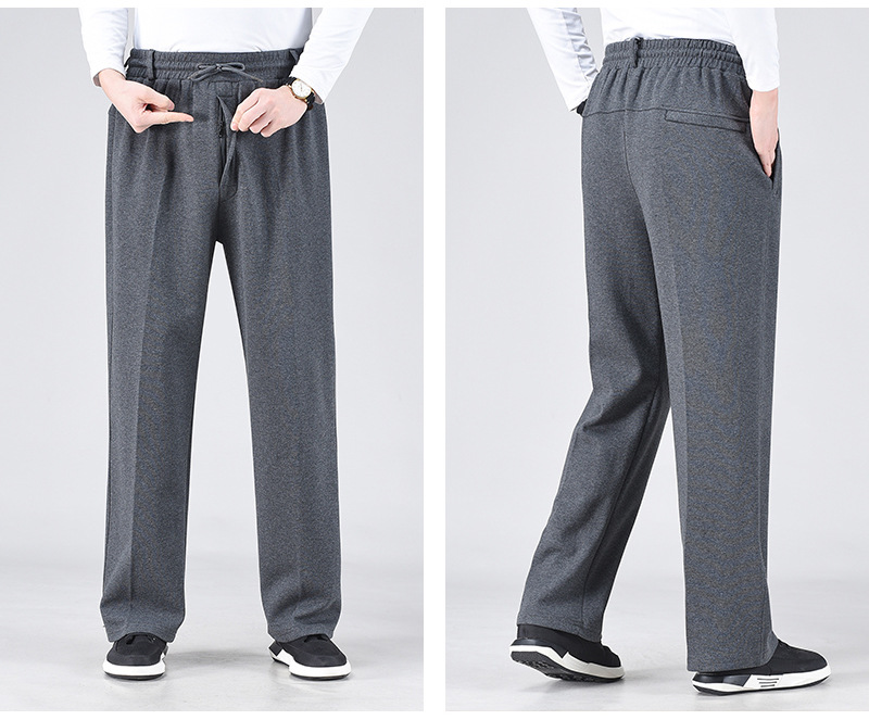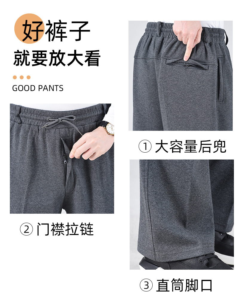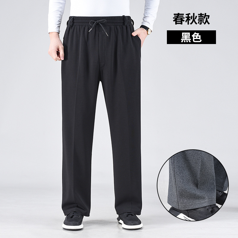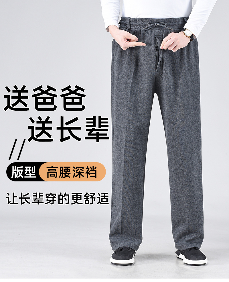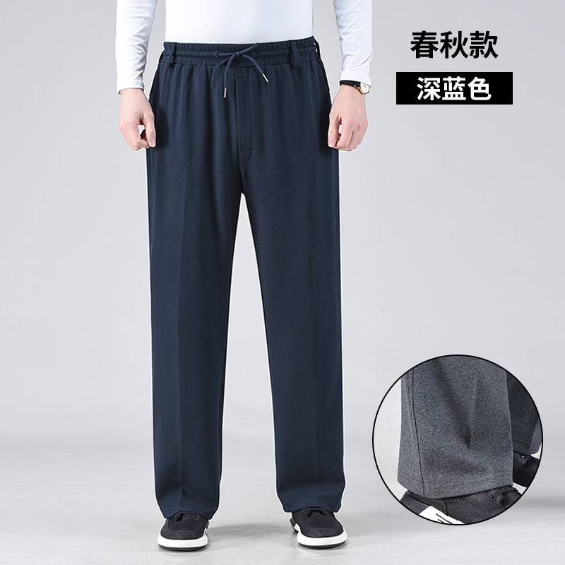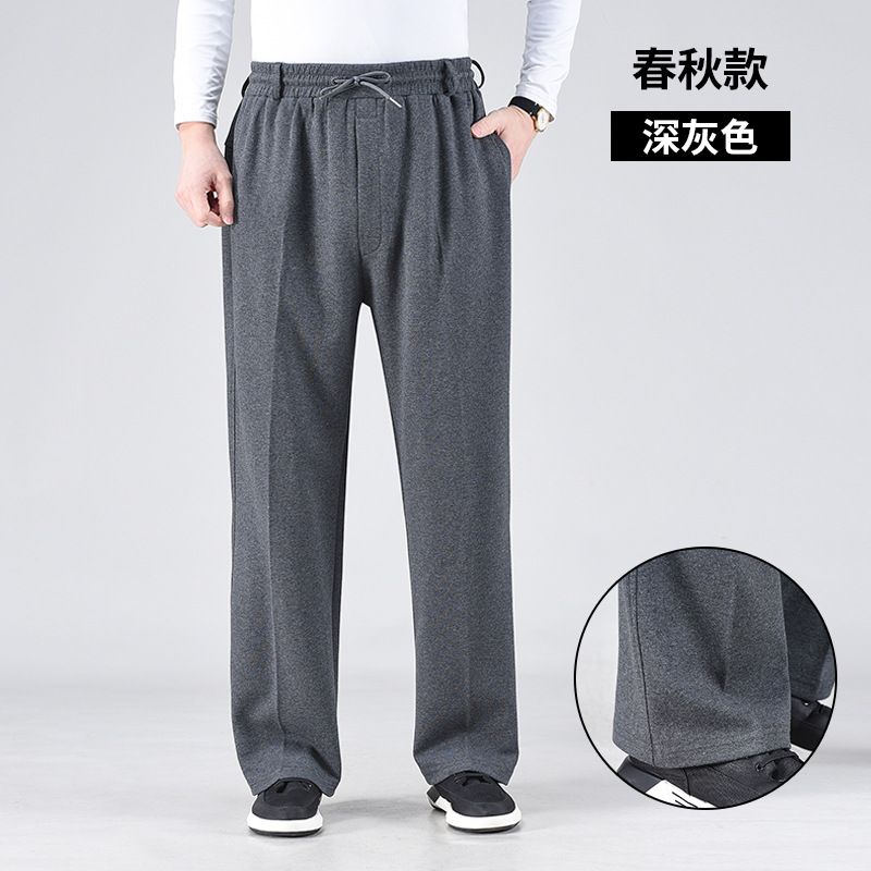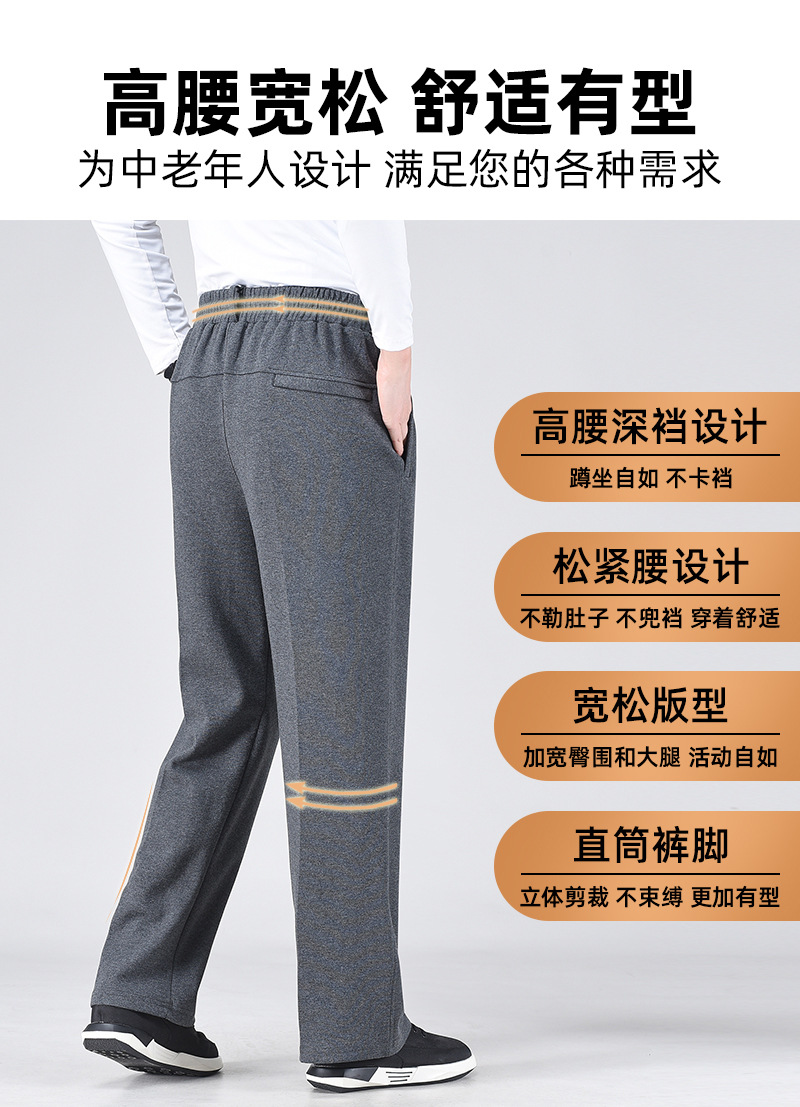 봄 가을과 겨울 중년 및 노인을위한 남자 스포츠 바지 기모 프론트 오프닝 라켓 높은 허리 및 딥 크로 치 느슨한 아빠의 운동복