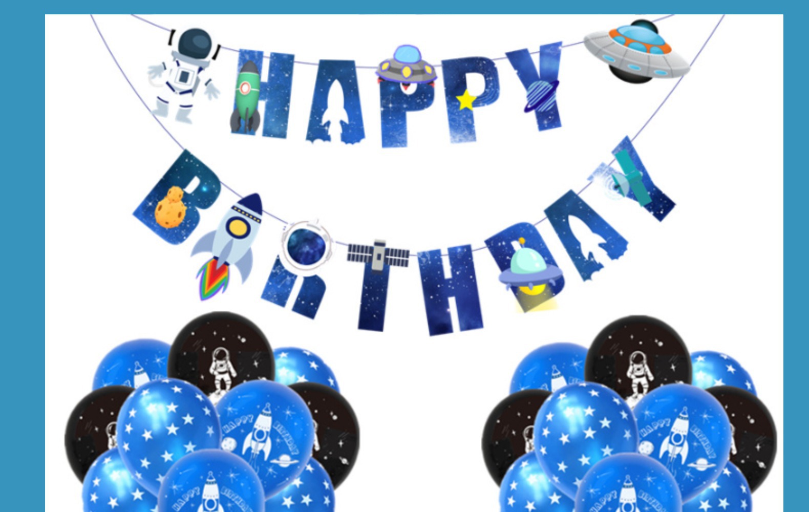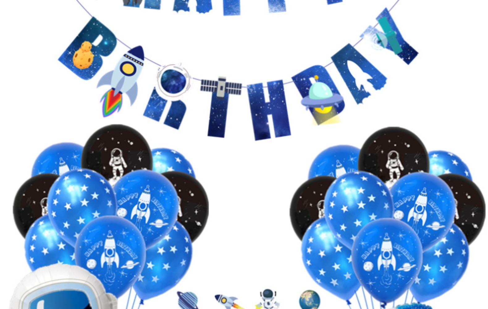 우주 테마 생일 세트 스타 시리즈 생일 배너 알루미늄 필름 풍선 어린이 생일 파티 장식스토어 가기