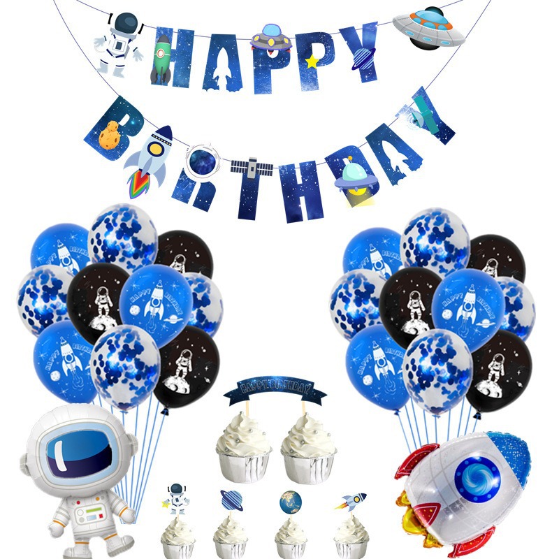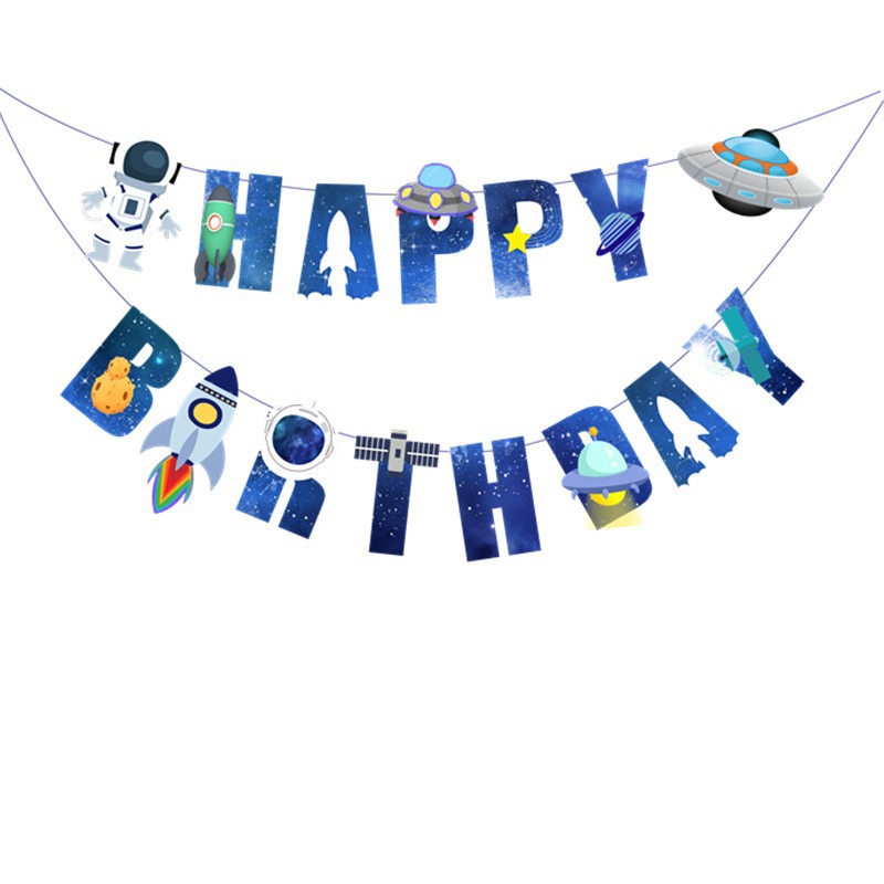 우주 테마 생일 세트 스타 시리즈 생일 배너 알루미늄 필름 풍선 어린이 생일 파티 장식