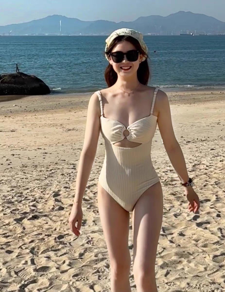 하이 엔드 특수 패브릭 간단한 순수 샤넬 스타일 작은 가슴 소녀 슬링 높은 허리 수영복 여성용 수영복스토어 가기