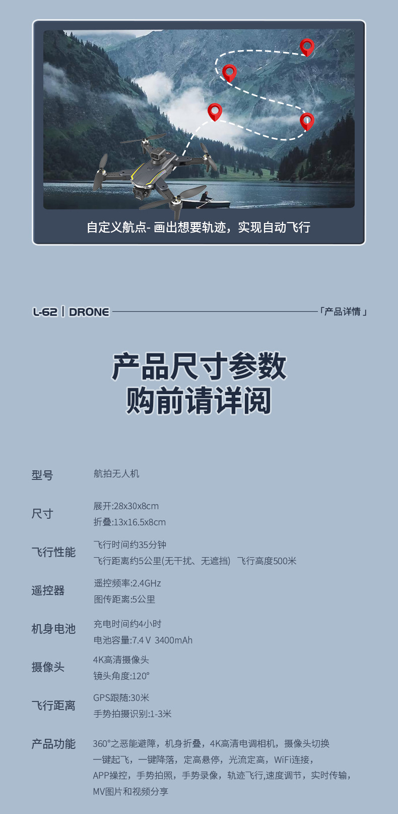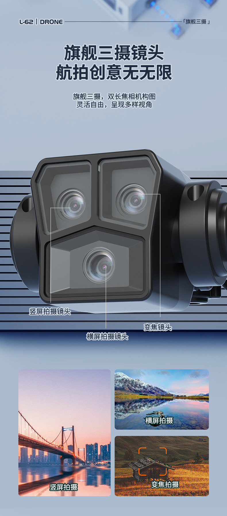 국경 간 브러시리스 L62 UAV 레이저 장애물 회피 GPS 자동 반환 원격 제어 항공기가 포함된 HD 렌즈 모듈스토어 가기
