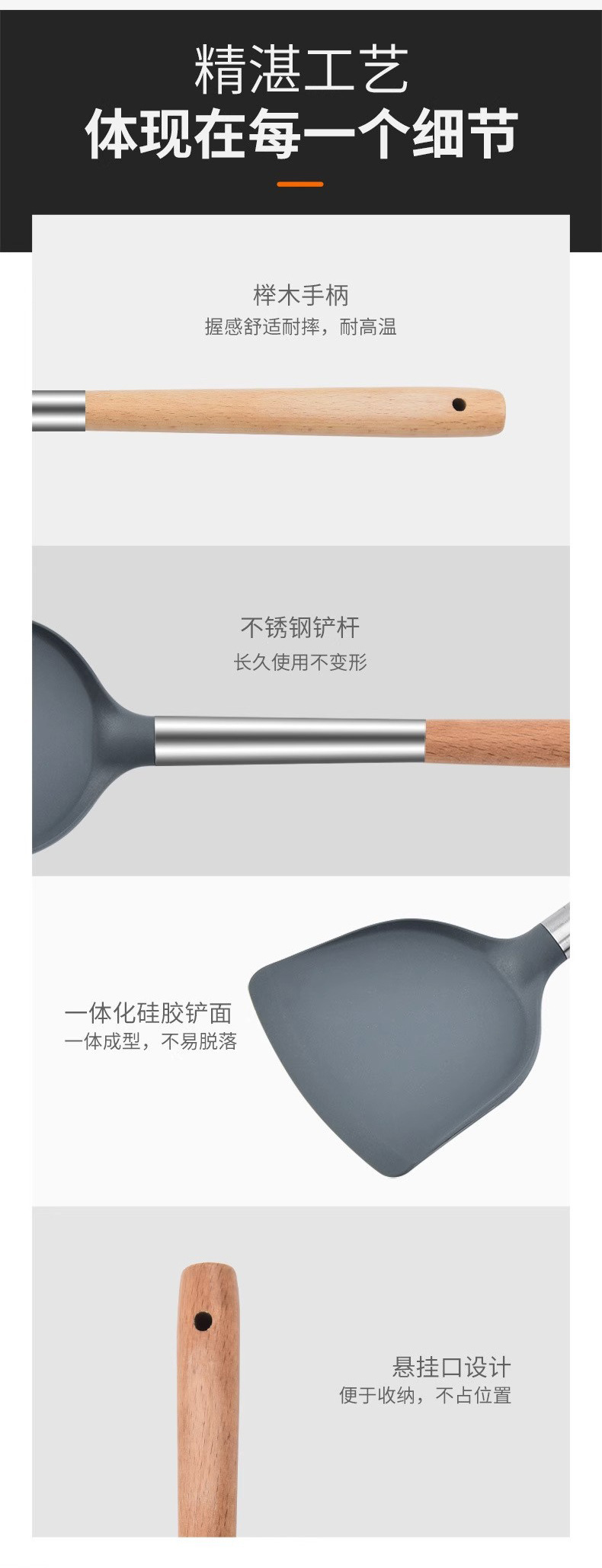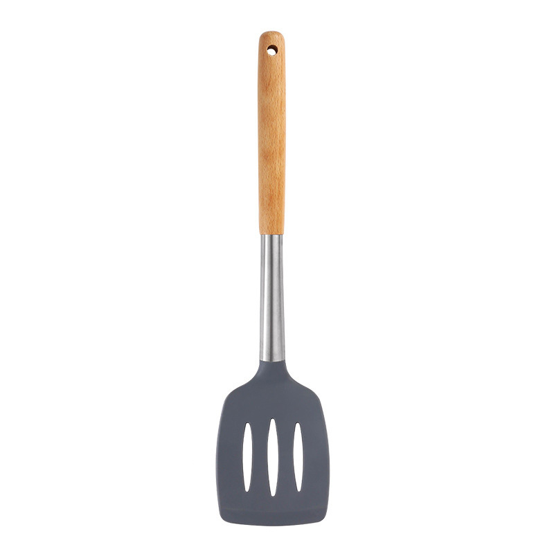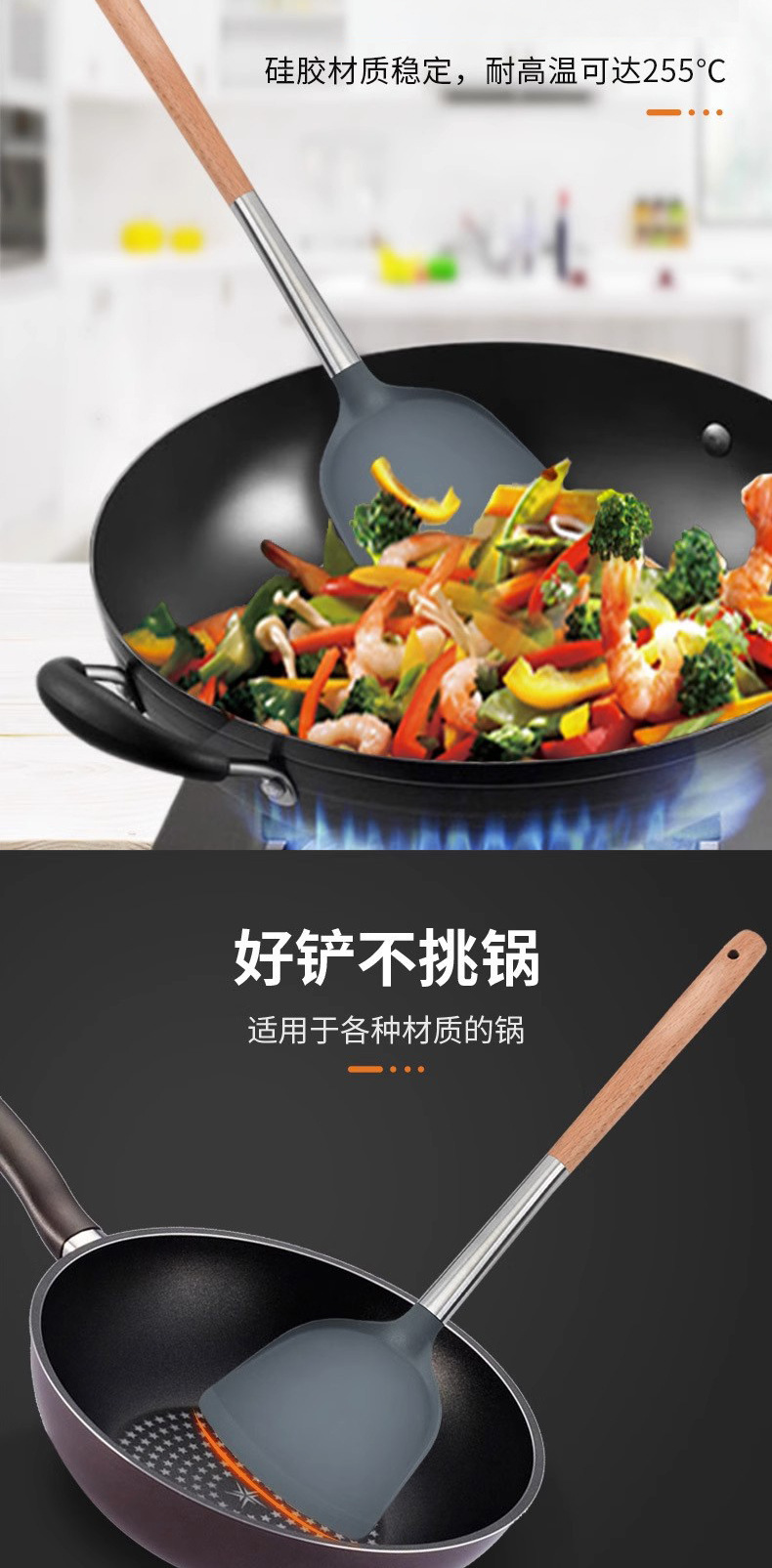 도매 비 스틱 실리콘 주걱 주방 wok 주걱 수프 숟가락 낚시 필터 요리 주방 용품 나무 손잡이 실리콘 주걱 스푼