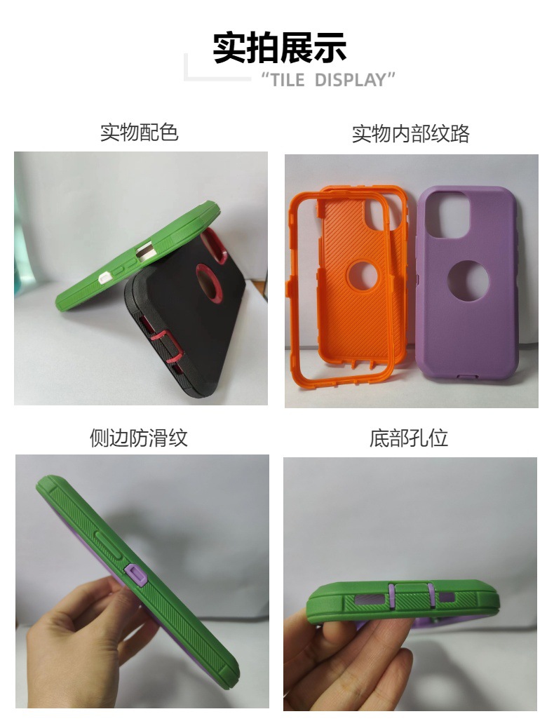 3.【选材】内壳用PC+ABS注塑成形,是一种硬度强,色质纯的原材料。外壳是TPU,是一种软性的弹体物质。的模塑制作工艺,且易于安装和拆除。