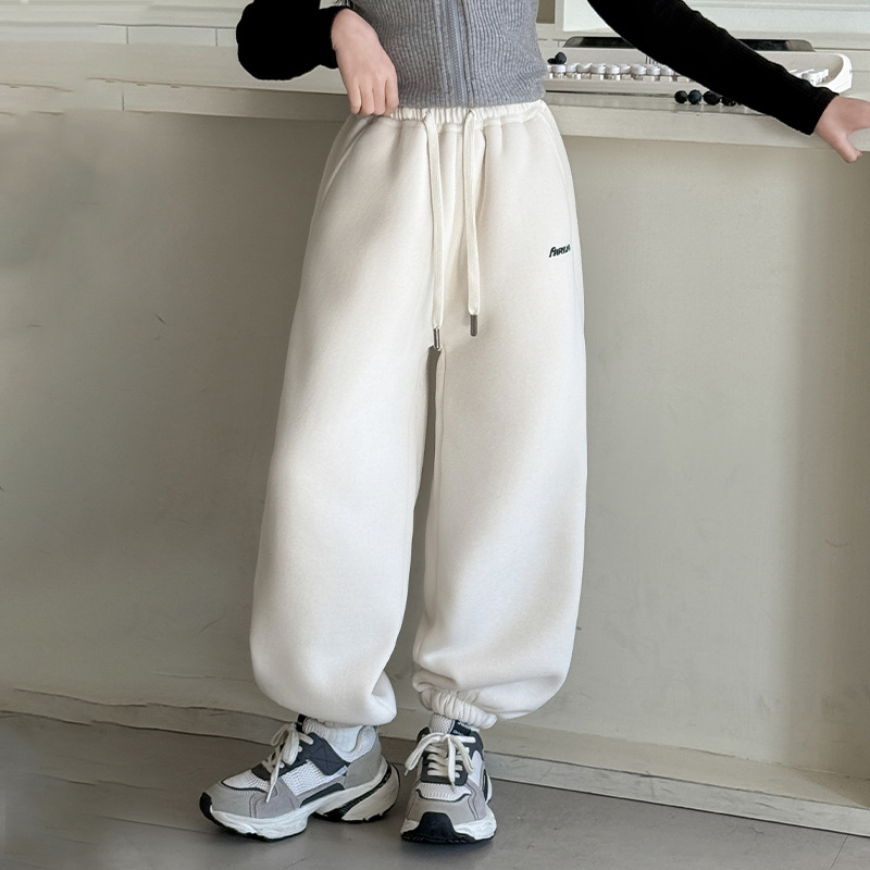 여자 기모 바지 2024 새로운 스타일 여자 서양식 두꺼운 캐주얼 바지 여자 학생 따뜻한 스포츠 바지 유행스토어 가기