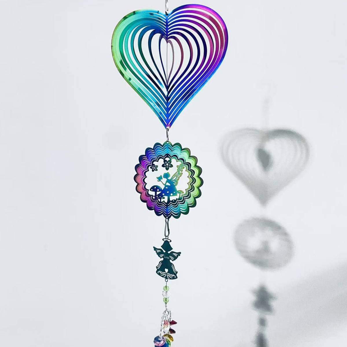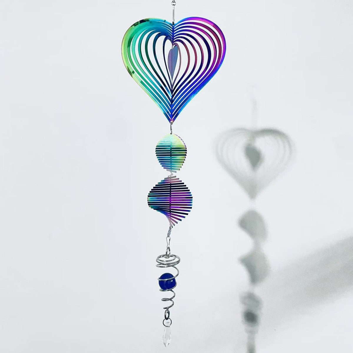 공장 제작 다채로운 그라데이션 금속 3D 무소음 풍경종 북유럽 스타일 회전 정원 장식용 스테인리스 벨