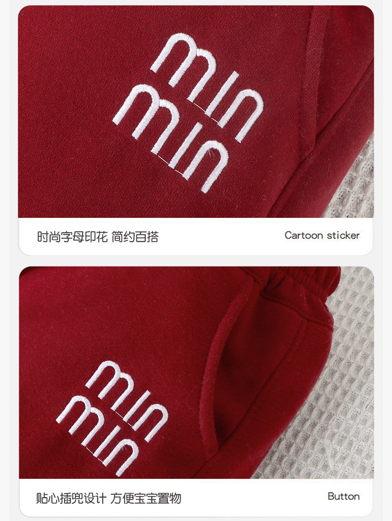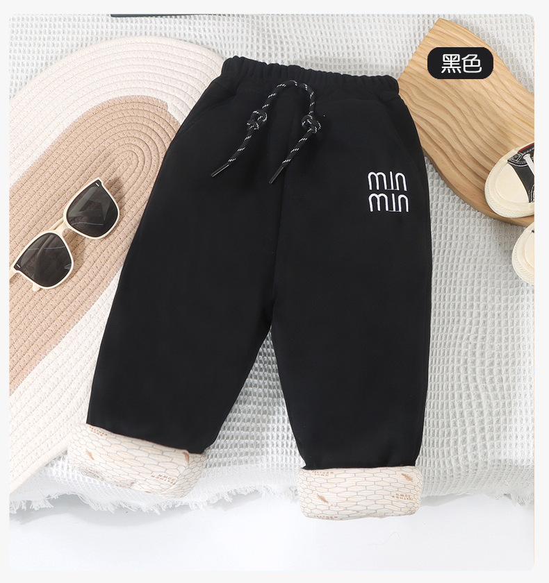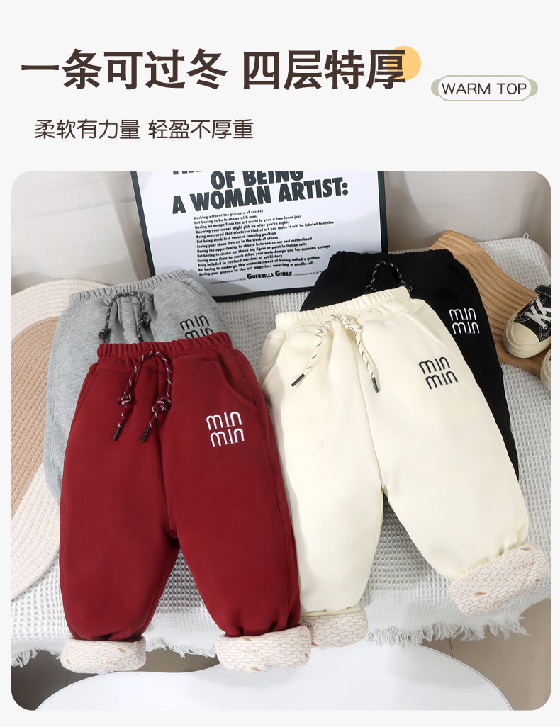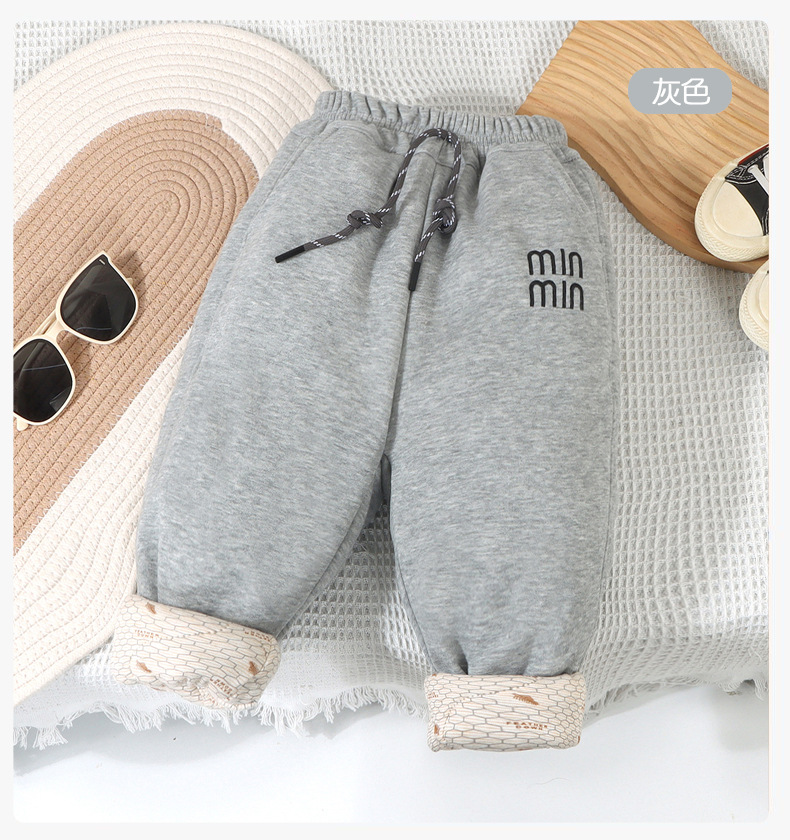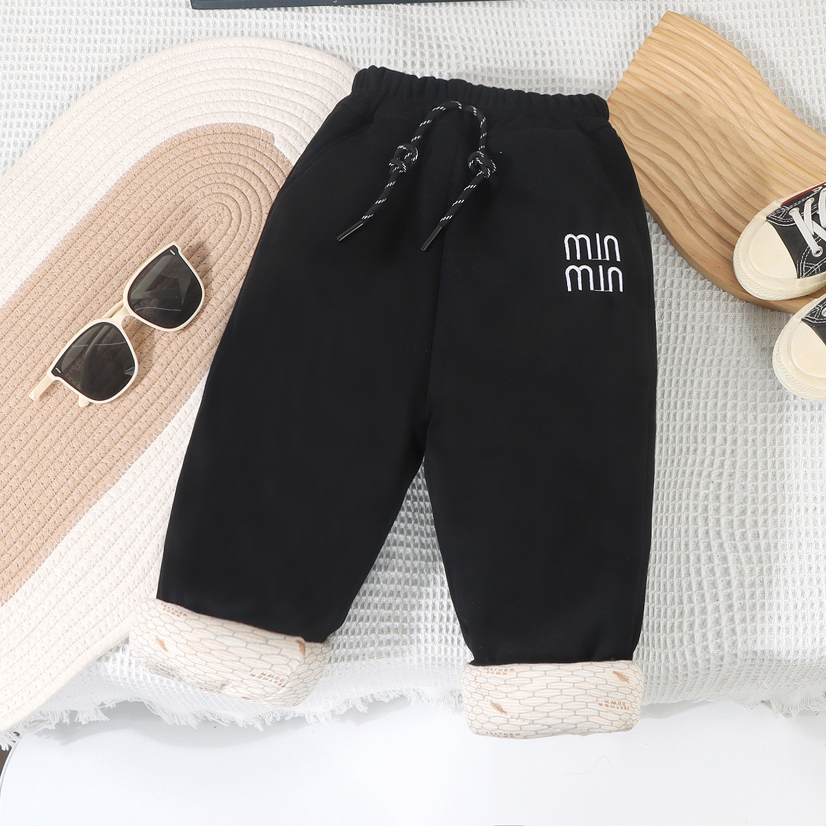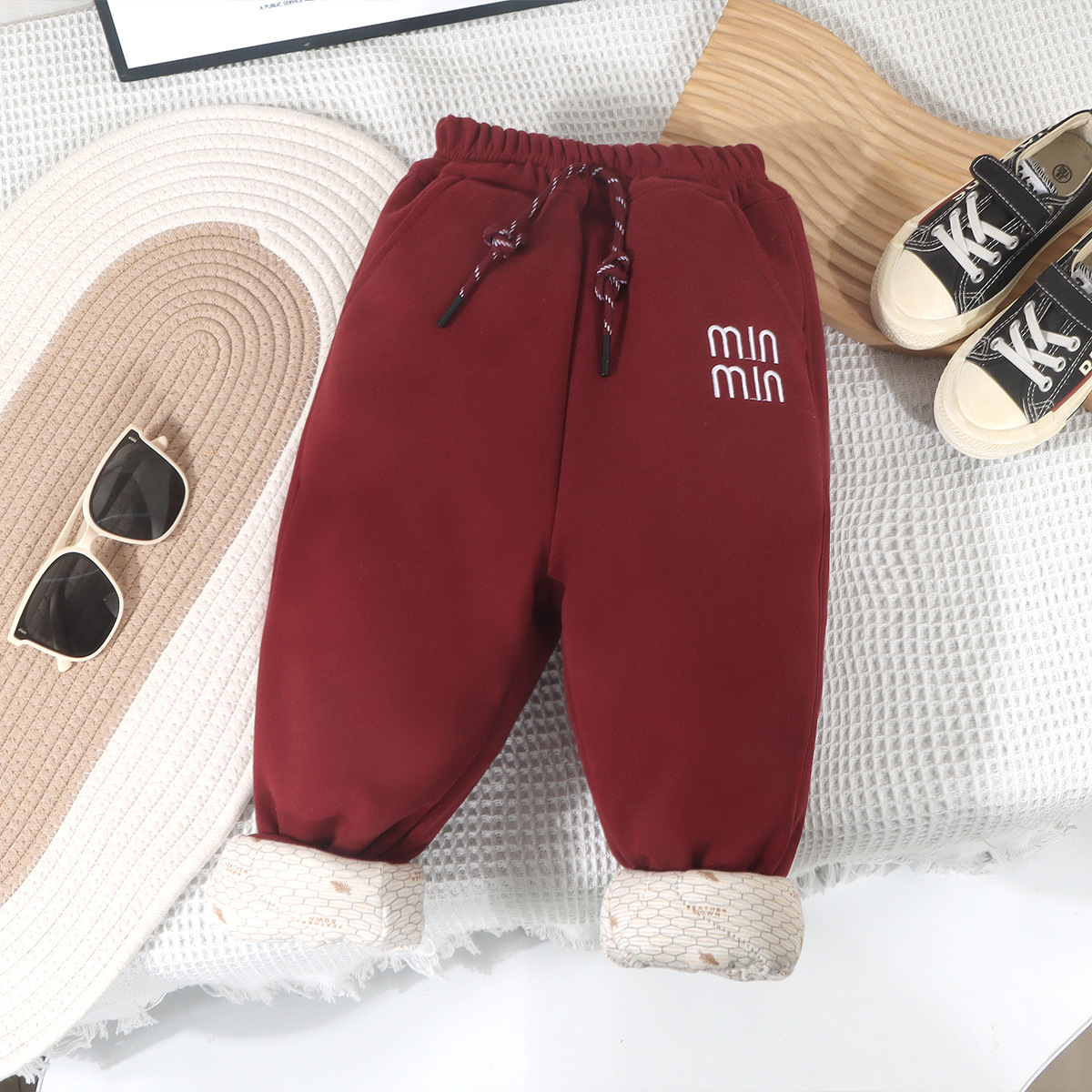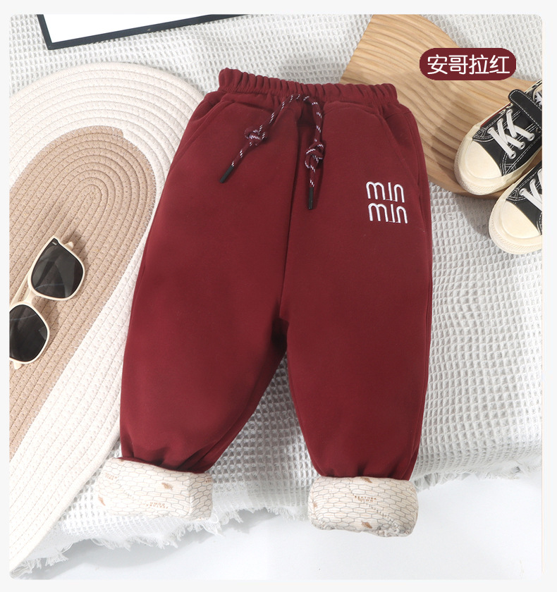 어린이 기모 두꺼운 바지 겨울 Ancola Red Elastor 폭발 서양식 편지 기모 스위트 바지 캐주얼 바지 겨울