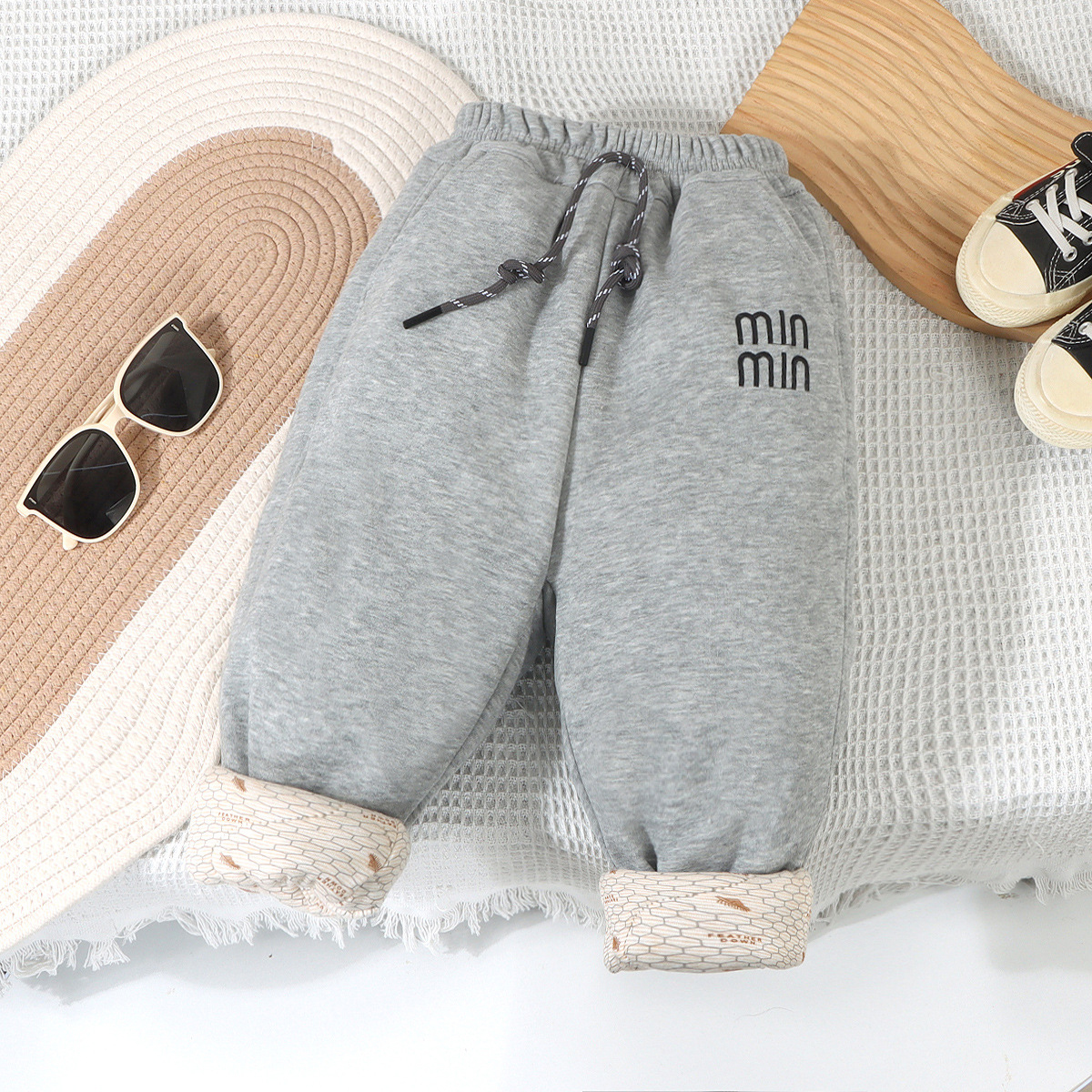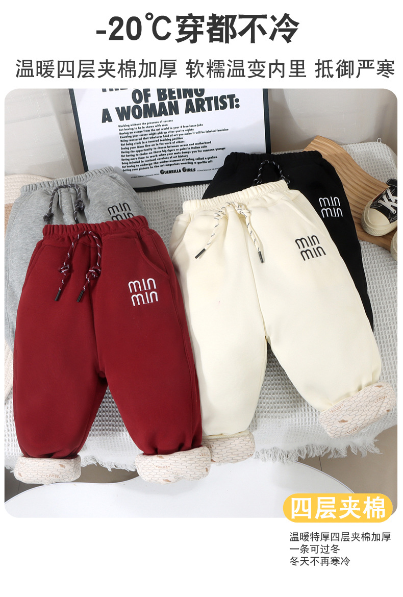 어린이 기모 두꺼운 바지 겨울 Ancola Red Elastor 폭발 서양식 편지 기모 스위트 바지 캐주얼 바지 겨울스토어 가기
