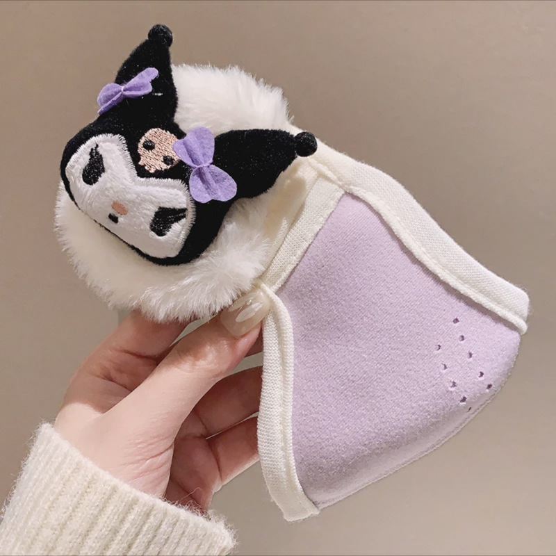 귀여운 면화로 가득 찬 쿨로 미 어린이 따뜻한 마스크 귀마개 통합 소녀들의 내한성 귀 보호 기모 두꺼운 마스크 귀마개스토어 가기