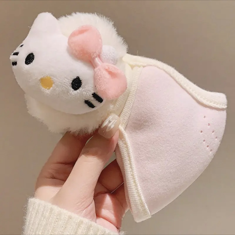 귀여운 면화로 가득 찬 쿨로 미 어린이 따뜻한 마스크 귀마개 통합 소녀들의 내한성 귀 보호 기모 두꺼운 마스크 귀마개